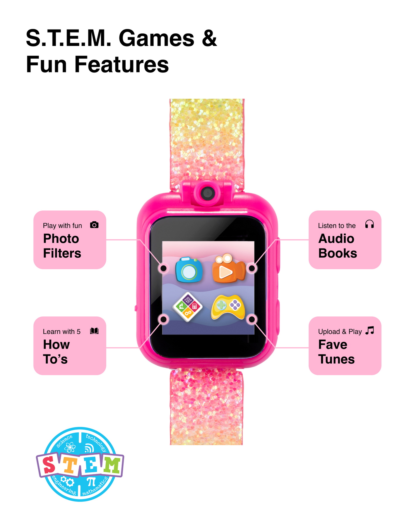 PlayZoom 2 Kids Smartwatch: Pastel Rainbow Glitter Print