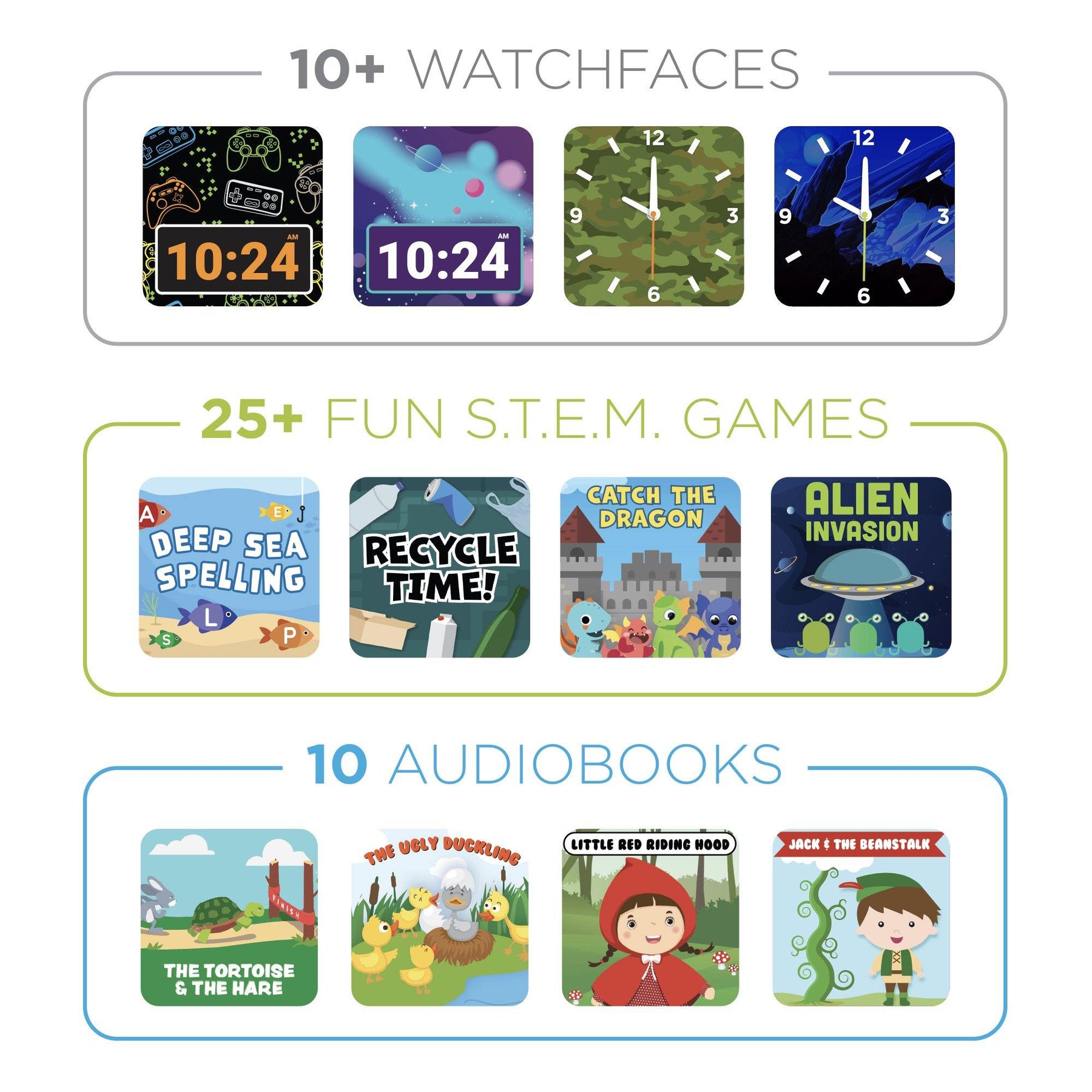 The PlayZoom 2 Kids Smartwatch is both educational and fun, being a gift that keeps on giving! It comes with features such as a swivel camera, gallery, customizable clock faces, 30 learning and active games, sound animations, and so much more! This exciting smartwatch is a great present for all kids as it allows them to grow, keeps them engaged, and enables an interactive experience daily. Plus the PlayZoom doesn't connect to a cellular device and comes with an In Case of Emergency (ICE) Card on the watch, so it's free of GPS tracking and completely safe!