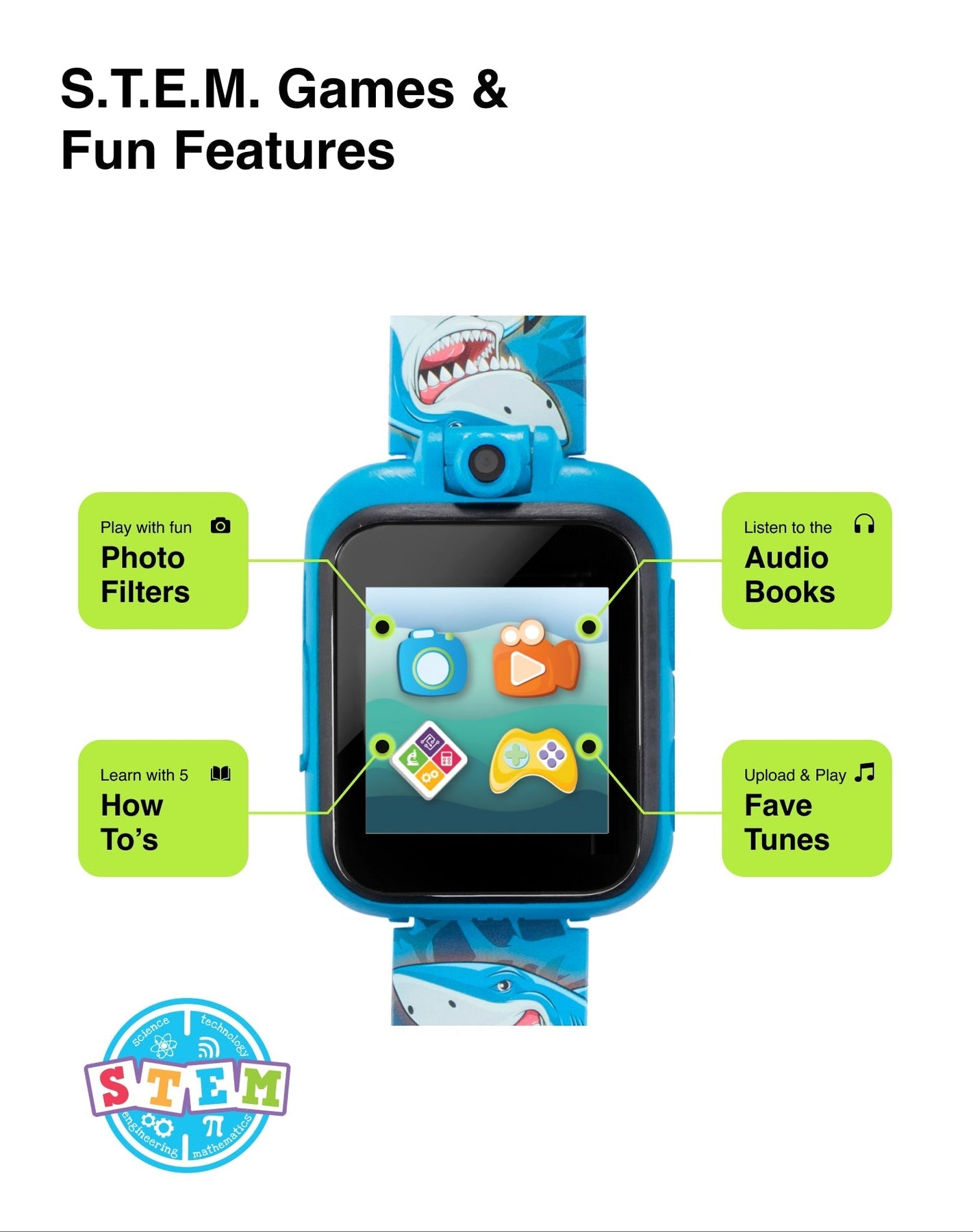 PlayZoom 2 Kids Smartwatch with Headphones: Blue Multi Shark