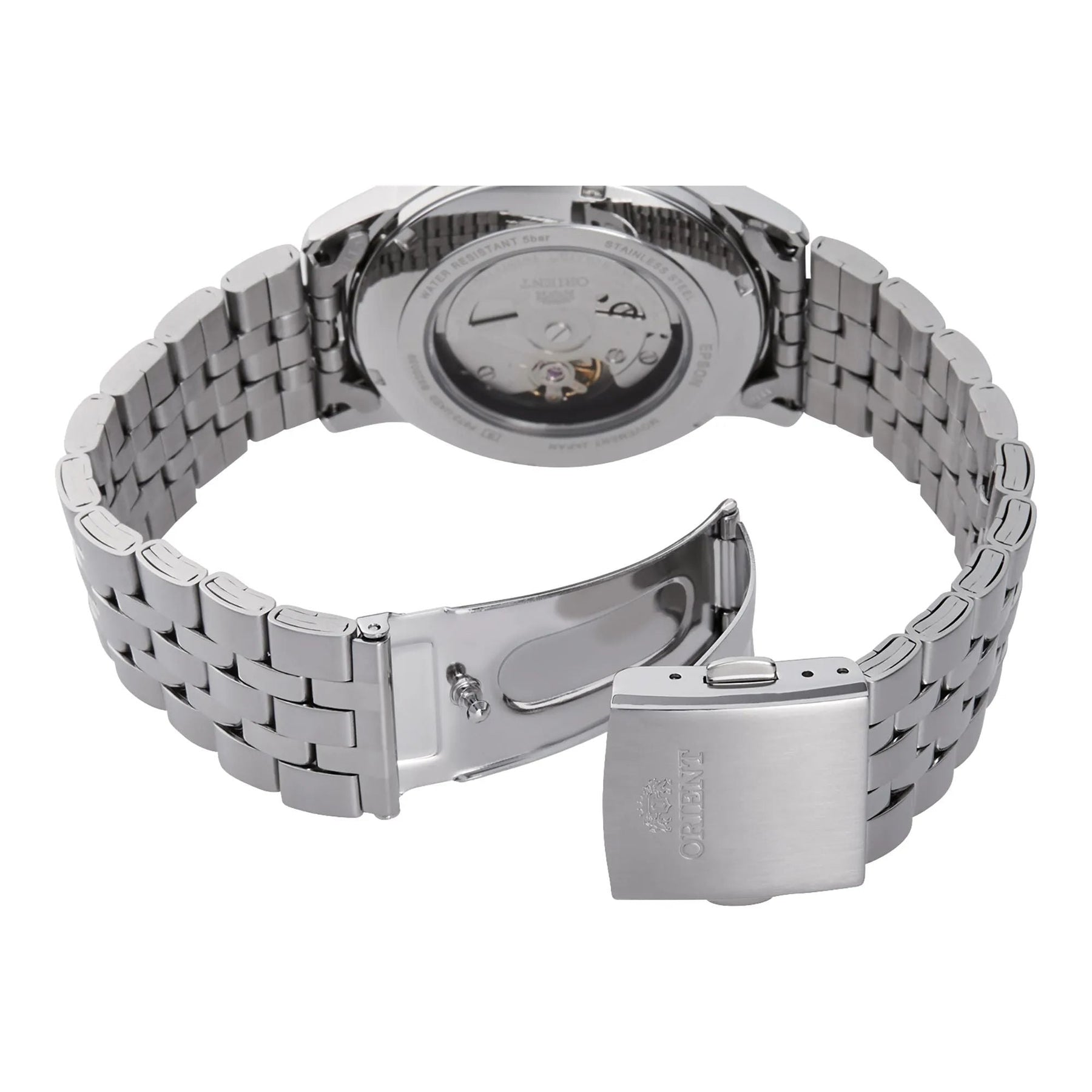 Case Material: Stainless Steel - Case Diameter: 42mm - Case Crystal: Mineral Crystal - Water Resistance: 50 m (165 feet) - Dial Color: Grey - Band: Silver Stainless Steel Bracelet - Movement: Automatic - Made in China
