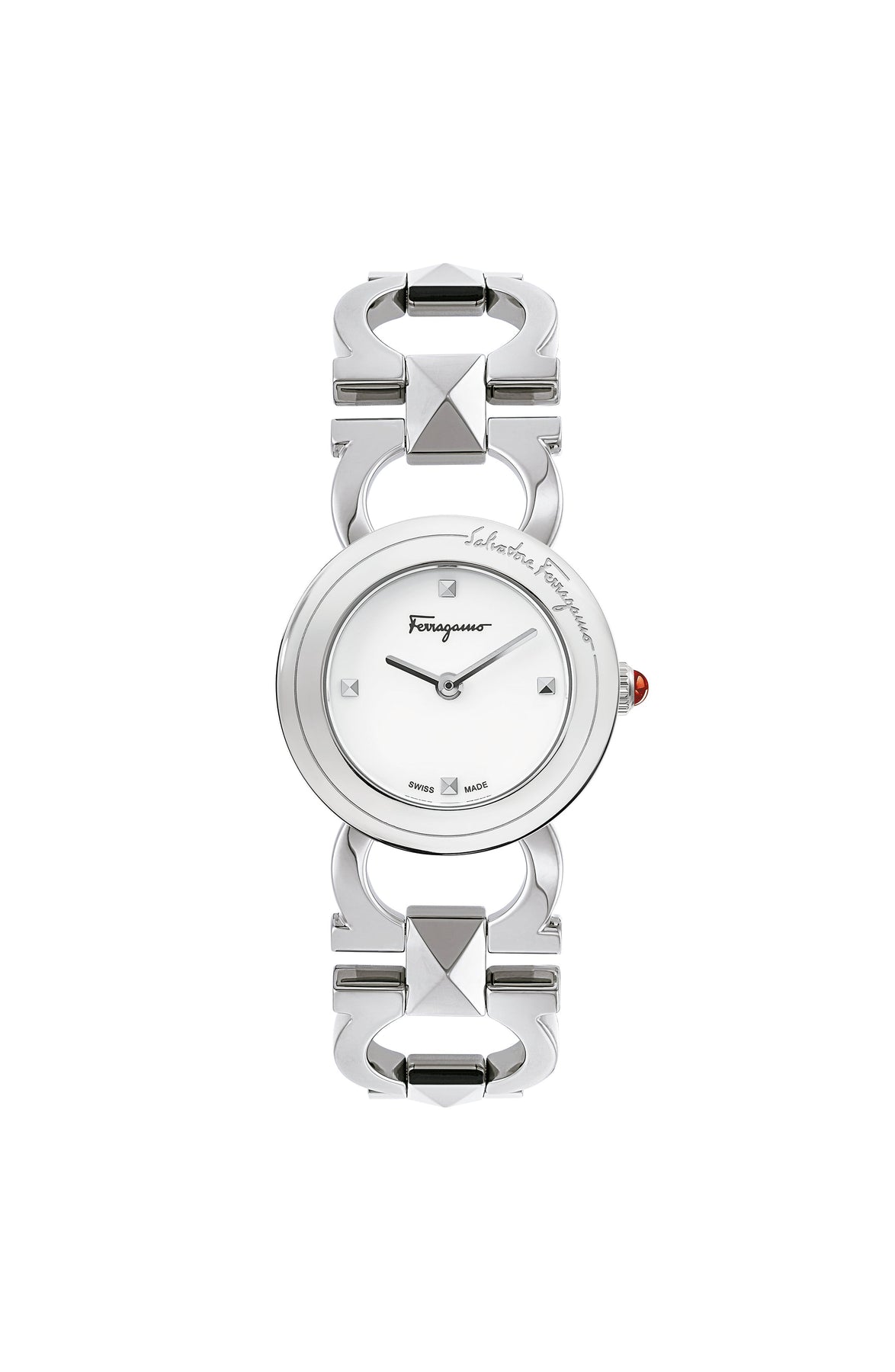 Case Material: Stainless Steel - Case Diameter: 25mm - Case Crystal: Sapphire Crystal Scratch Resistant - Water Resistance: 30 m (100 feet) - Dial Color: White - Band: Silver Stainless Steel Bracelet - Movement: Quartz - Made in Switzerland