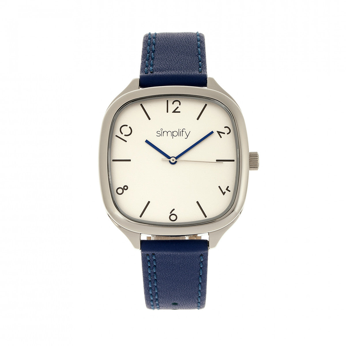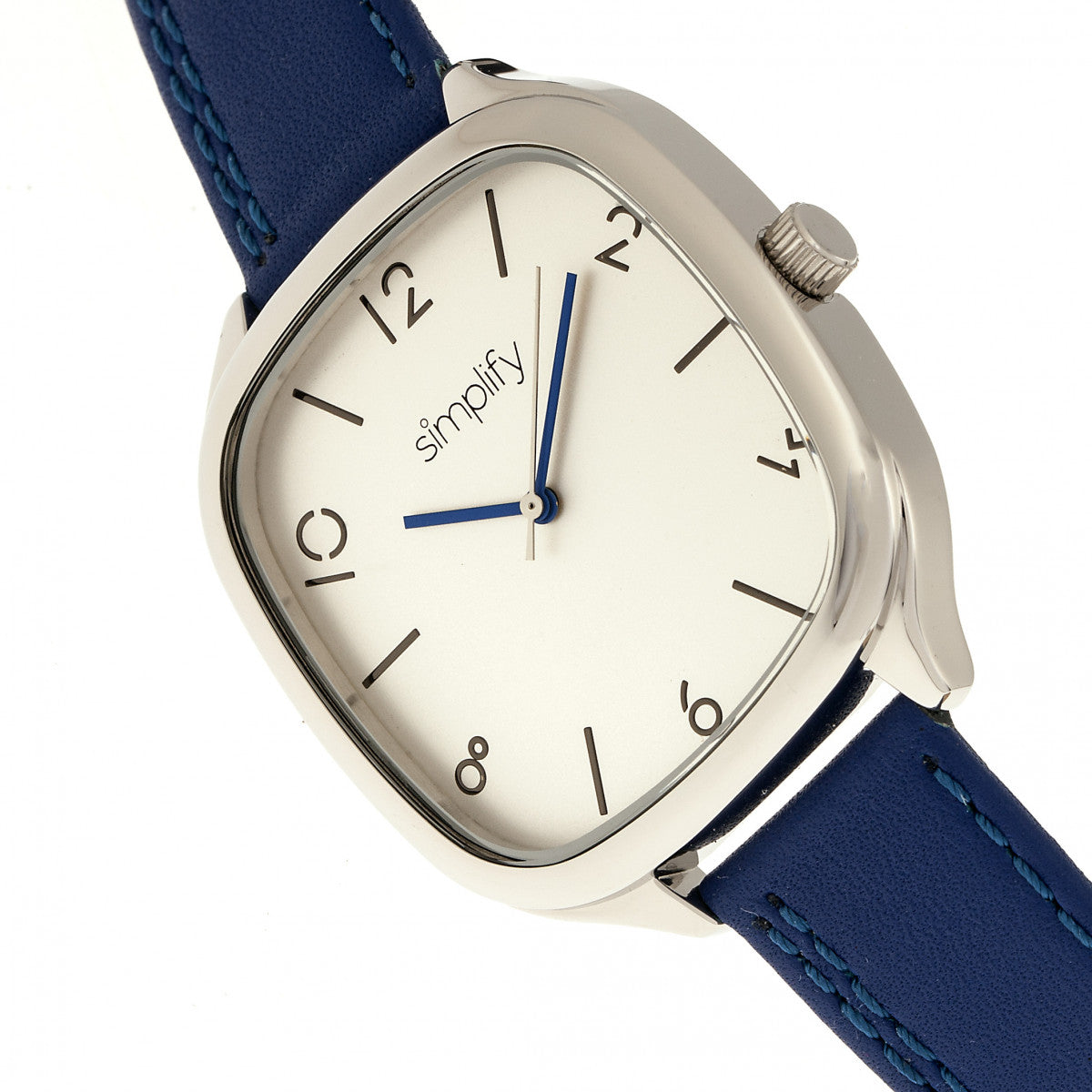 Simplify The 3500 Leather-Band Watch - Silver/Blue