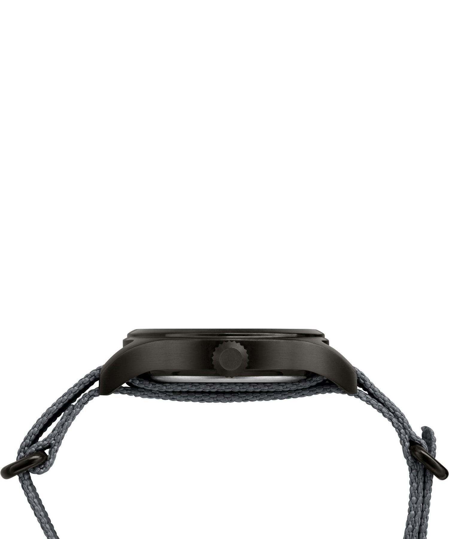 Case Material: Stainless Steel - Case Diameter: 40mm - Case Crystal: Mineral Crystal - Water Resistance: 50 m (165 feet) - Dial Color: Grey - Band: Grey Fabric Strap - Movement: Quartz - Made in China