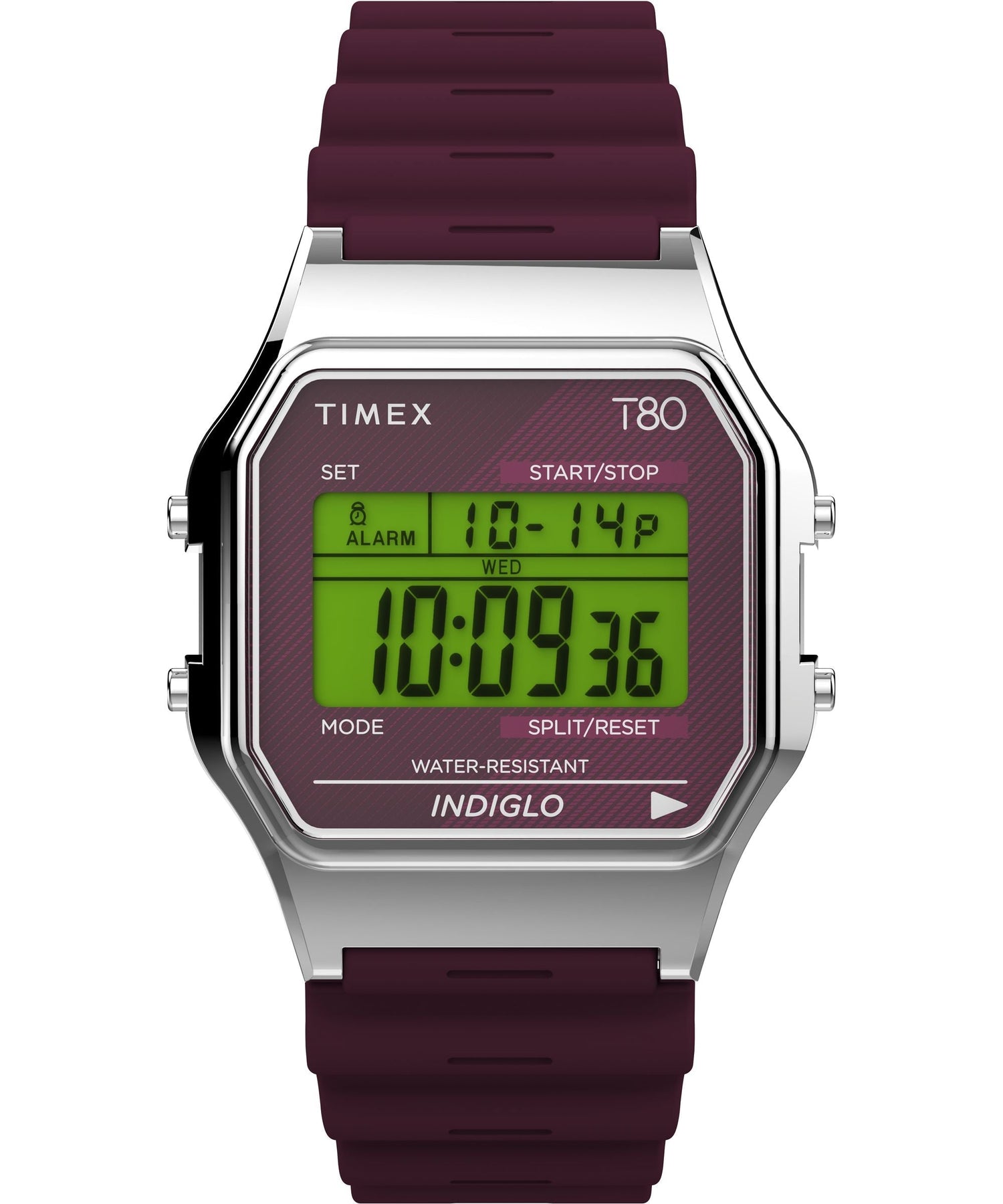 Case Material: Resin - Case Diameter: 34mm - Case Crystal: Acrylic Crystal - Water Resistance: 30 m (100 feet) - Dial Color: Digital - Band: Burgundy Resin Strap - Movement: Quartz - Features: Date - Made in China