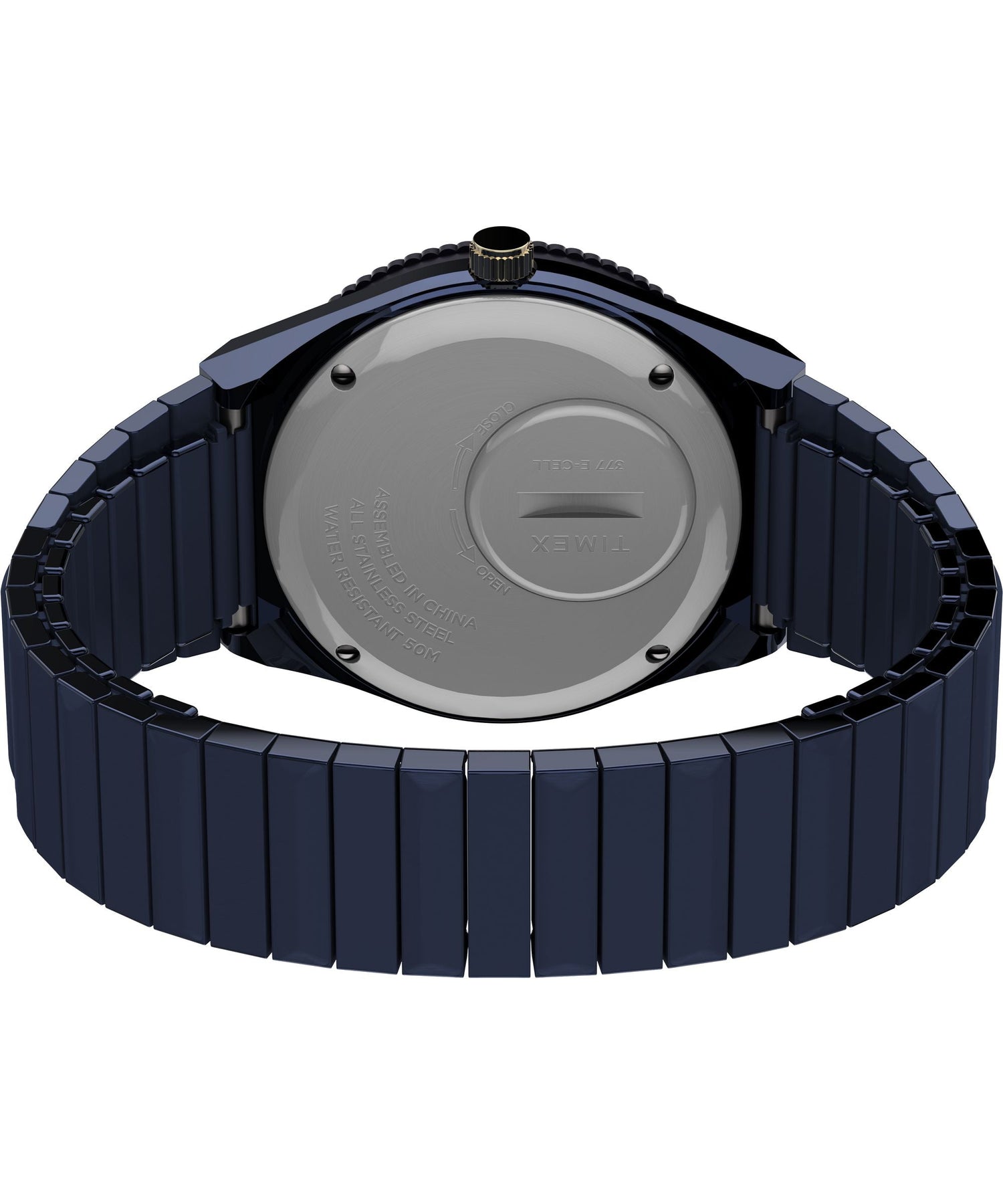 Case Material: Stainless Steel - Case Diameter: 36mm - Case Crystal: Acrylic Crystal - Water Resistance: 50 m (165 feet) - Dial Color: Blue - Band: Blue Stainless Steel Bracelet - Movement: Quartz - Made in China