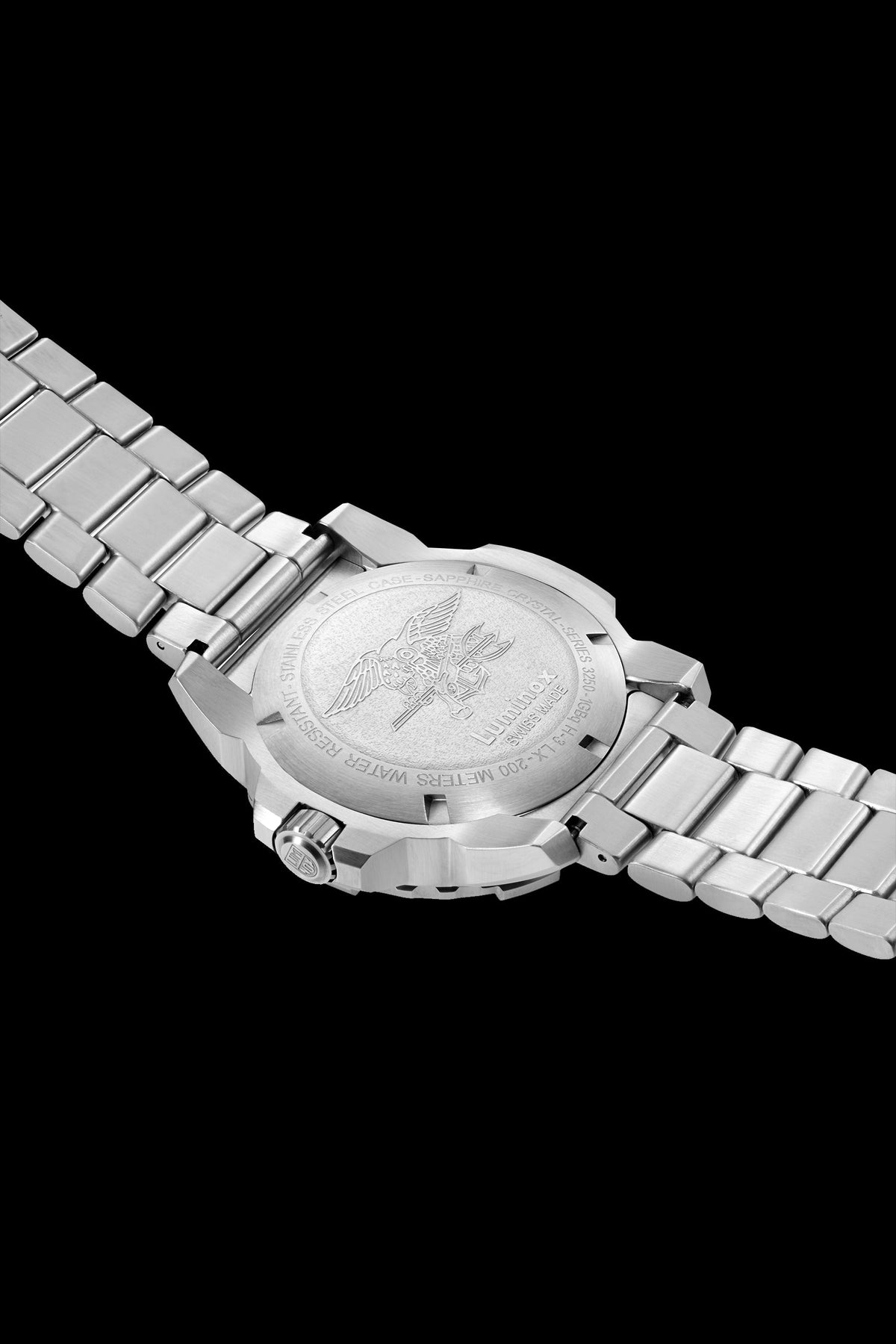 Case Material: Stainless Steel - Case Diameter: 45mm - Case Crystal: Sapphire Crystal Scratch Resistant - Water Resistance: 200 m (660 feet) - Dial Color: Blue - Band: Silver Stainless Steel Bracelet - Movement: Quartz - Made in Switzerland