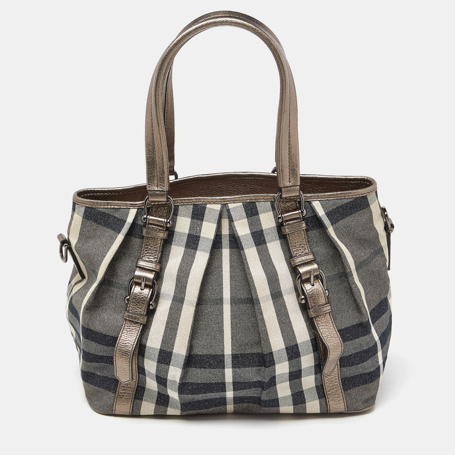 BURBERRY Beige Beat Check Lurex Fabric and Leather Northfield Tote