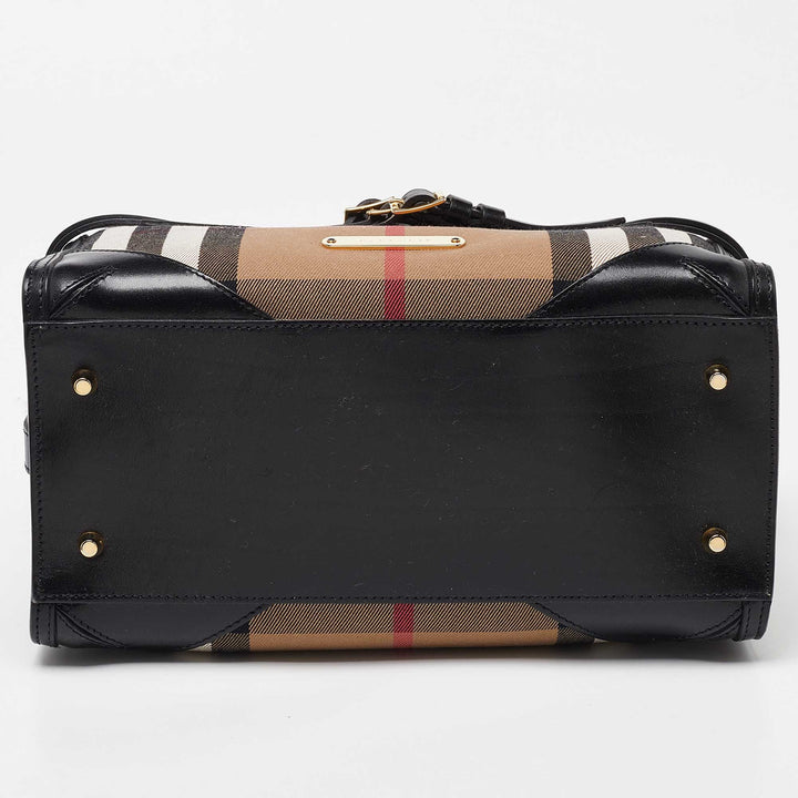 BURBERRY Beige/Black House Check Fabric and Leather Bridle Chester Bowler Bag