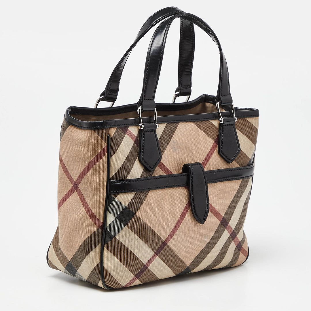BURBERRY Beige/Black Super Nova Check PVC and Patent Leather Tote