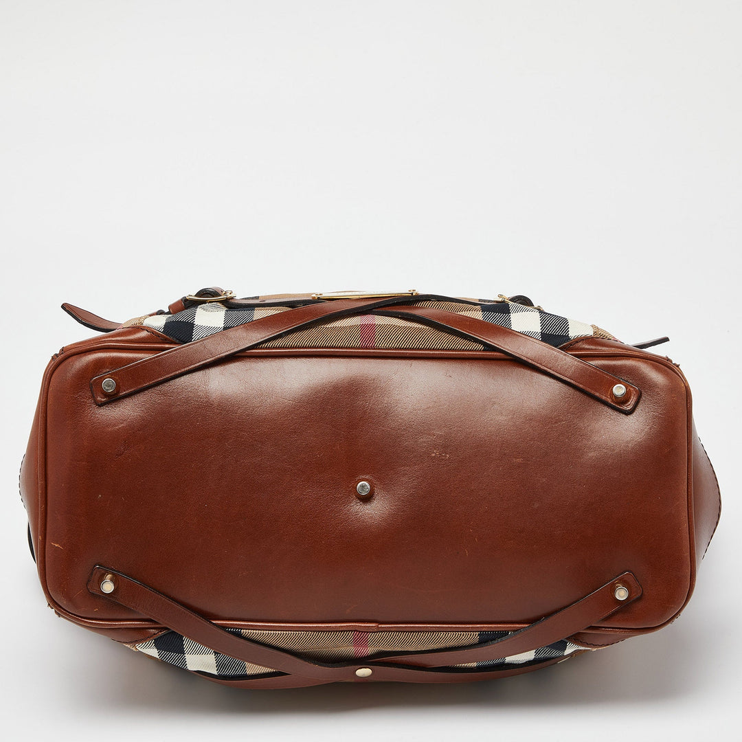 BURBERRY Beige/Brown House Check Canvas and Leather Medium Bridle Lynher Tote