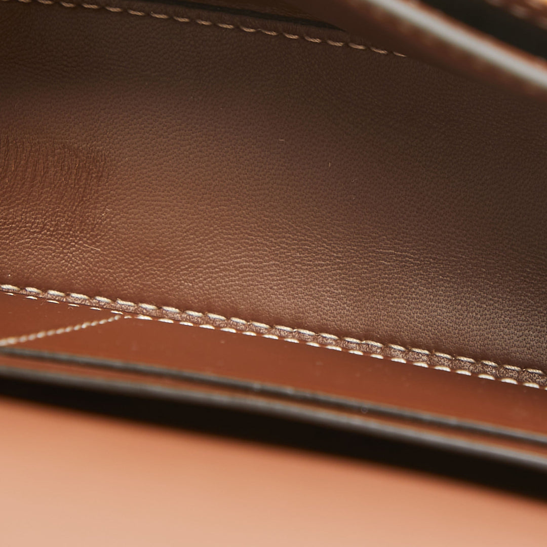With an architectural shape, this Burberry Olympia bag resembles the crescent moon. The brand signature on the front lends to its instant identification, and it can be carried conveniently with a shoulder strap. Capturing the essence of feminity, it celebrates beauty through its creative design. The top zipper closure of the bag secures its lined interior.