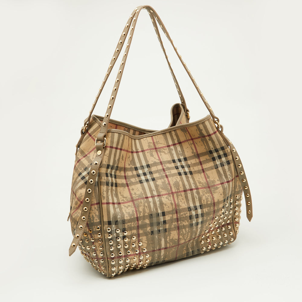 BURBERRY Beige/Grey Haymarket Check Coated Canvas And Leather Studded Special Edition Canterbury Tote