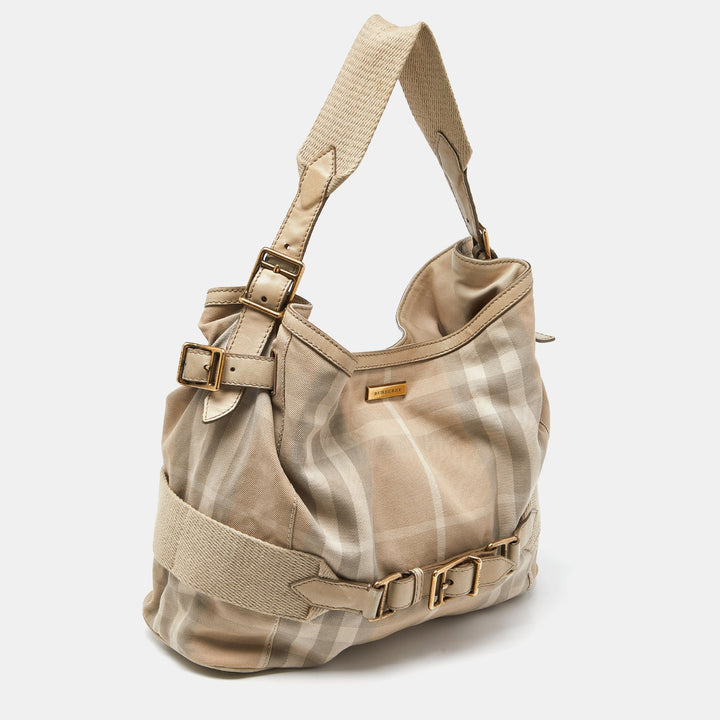 BURBERRY Beige House Check Canvas and Leather Large Parsons Bag