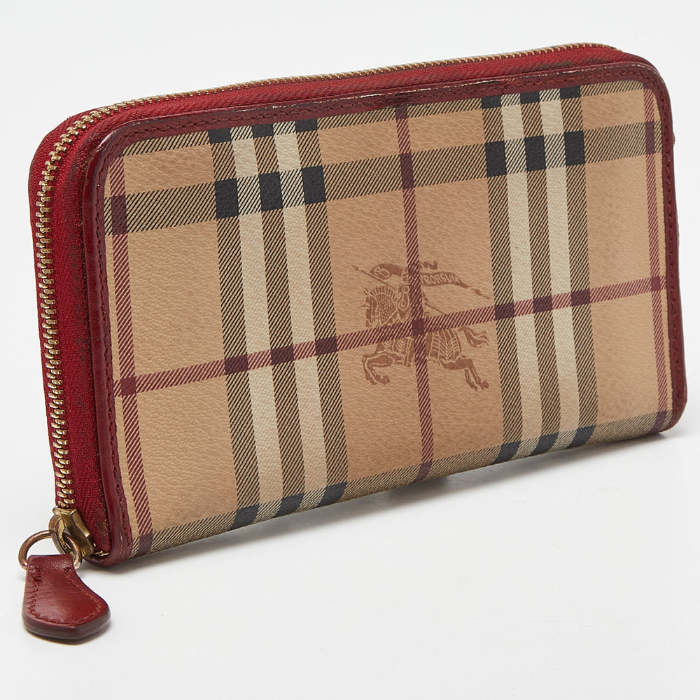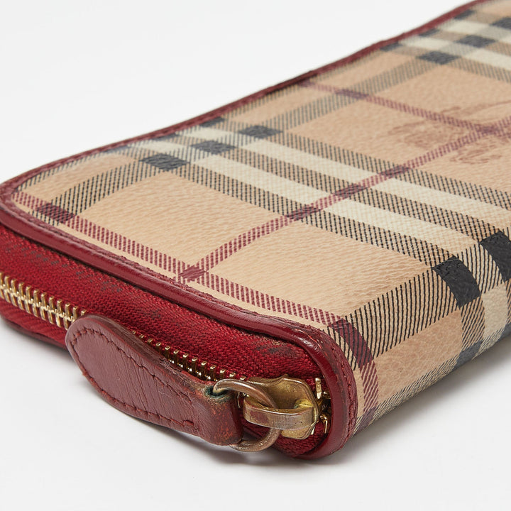 BURBERRY Beige/Red Haymarket Check Coated Canvas Zip Around Wallet