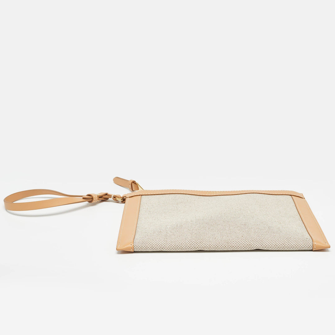 Burberry Beige/Tan Canvas and Leather Wristlet Pouch
