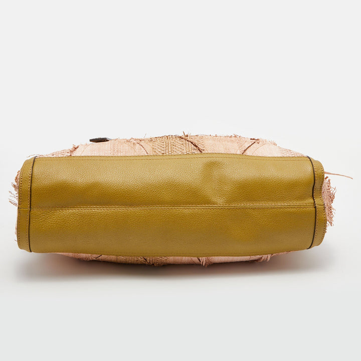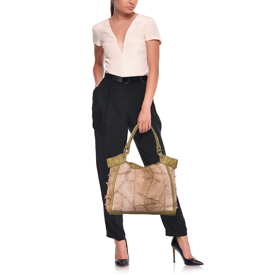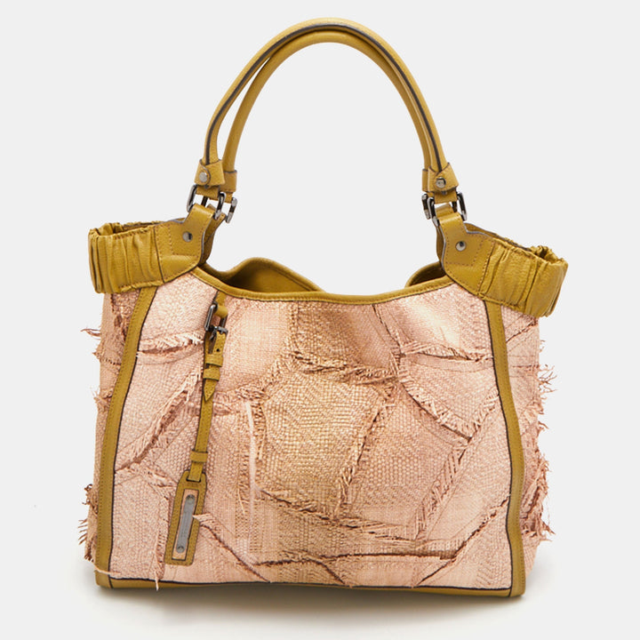 Burberry Beige/Green Raffia and Leather Covington Shopper Tote