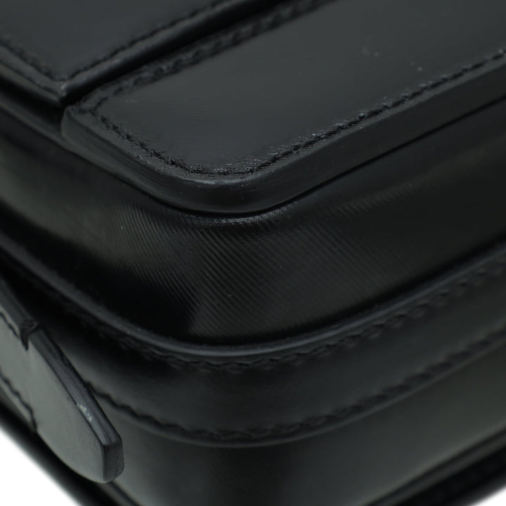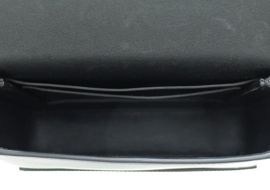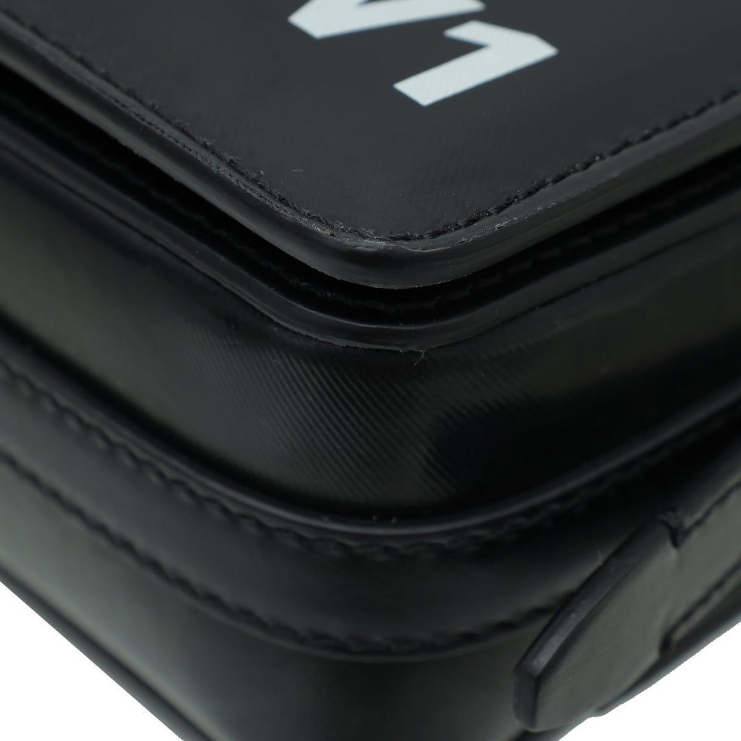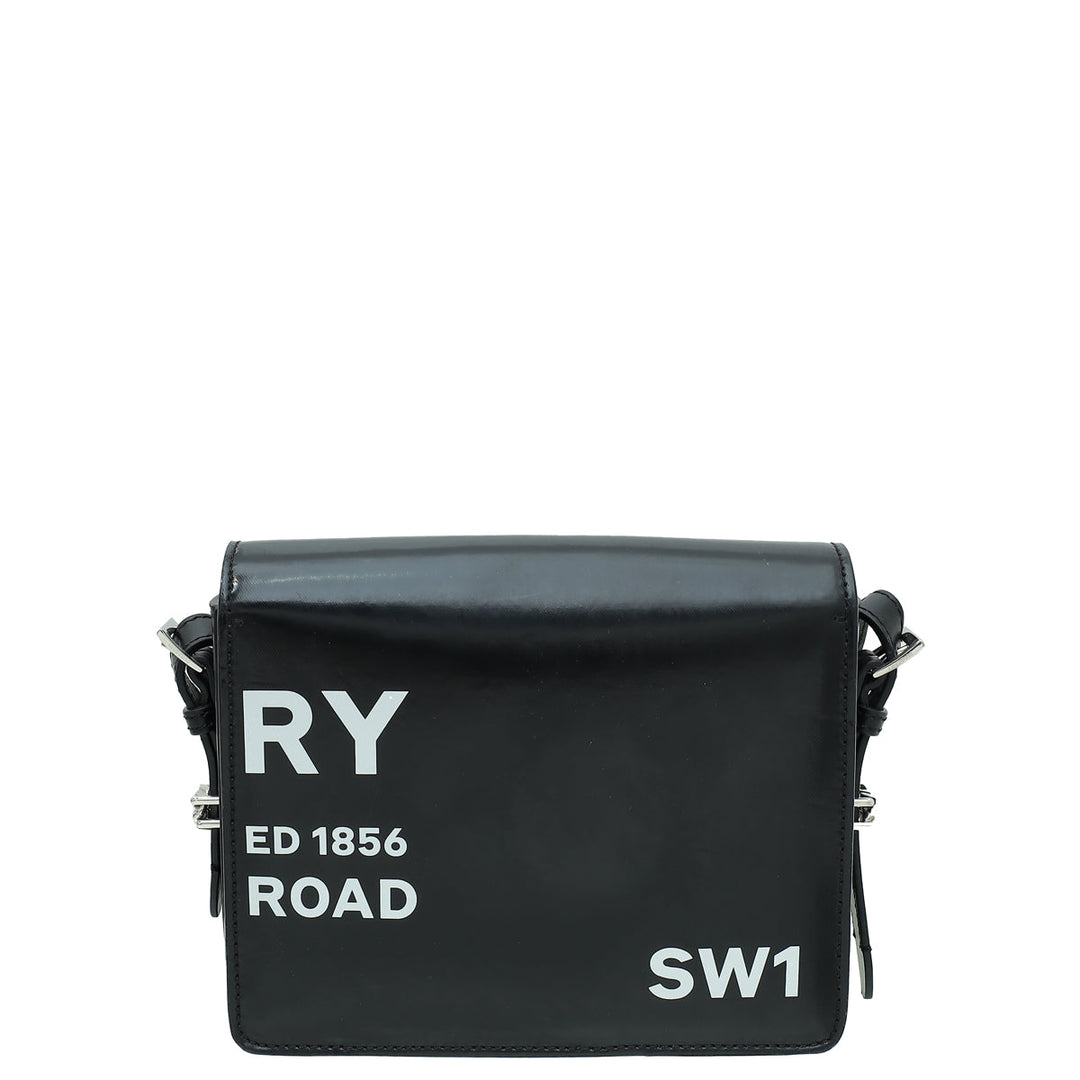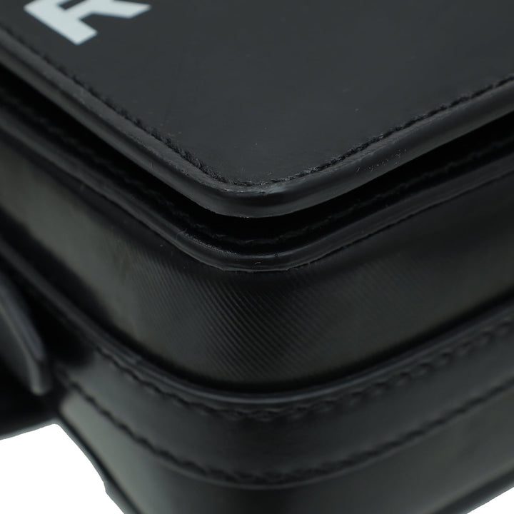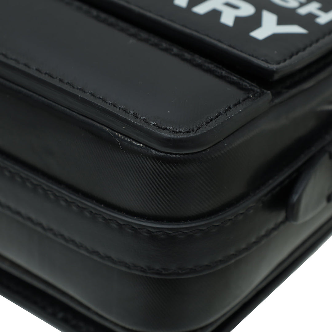 - Material: Black Coated Canvas with Black Leather Trim and White Graphic Print