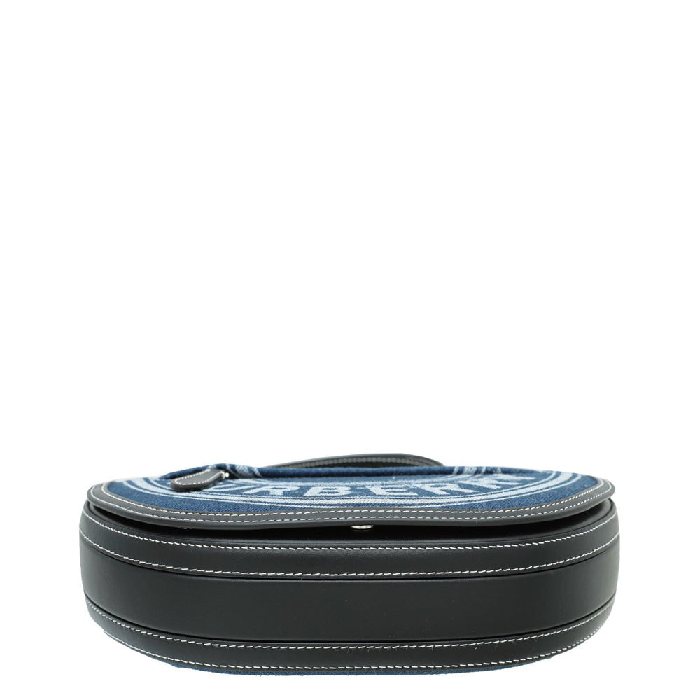 - Material: Blue Denim with Logo and Black Leather Trim