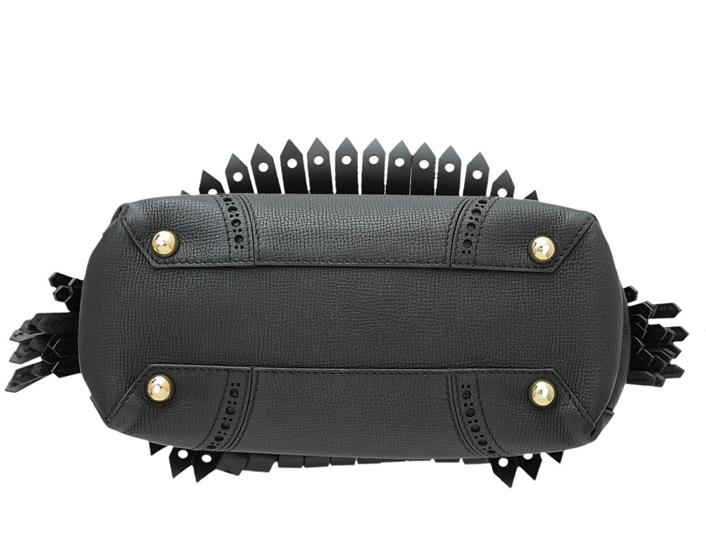 • Material: Black Leather with Fringe Details