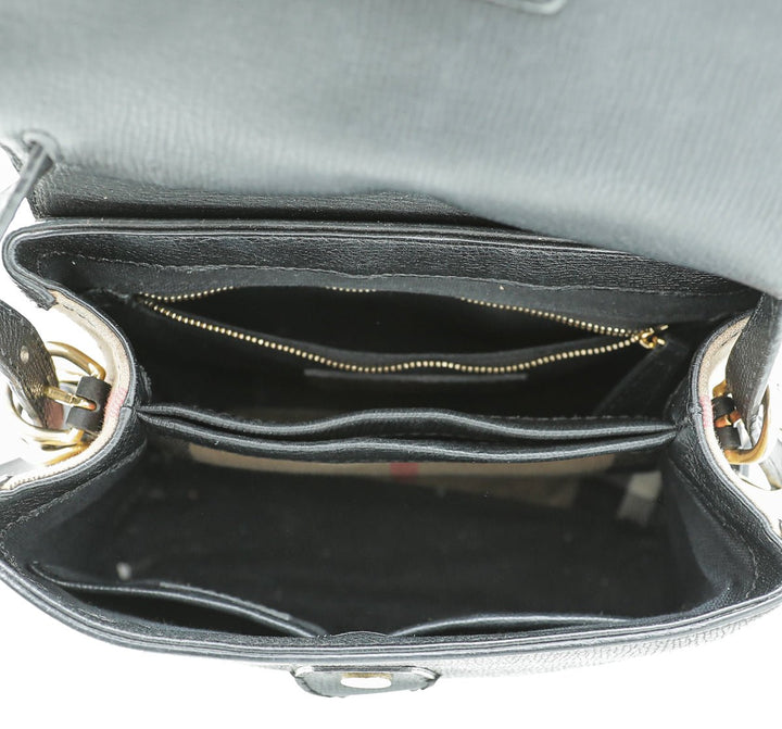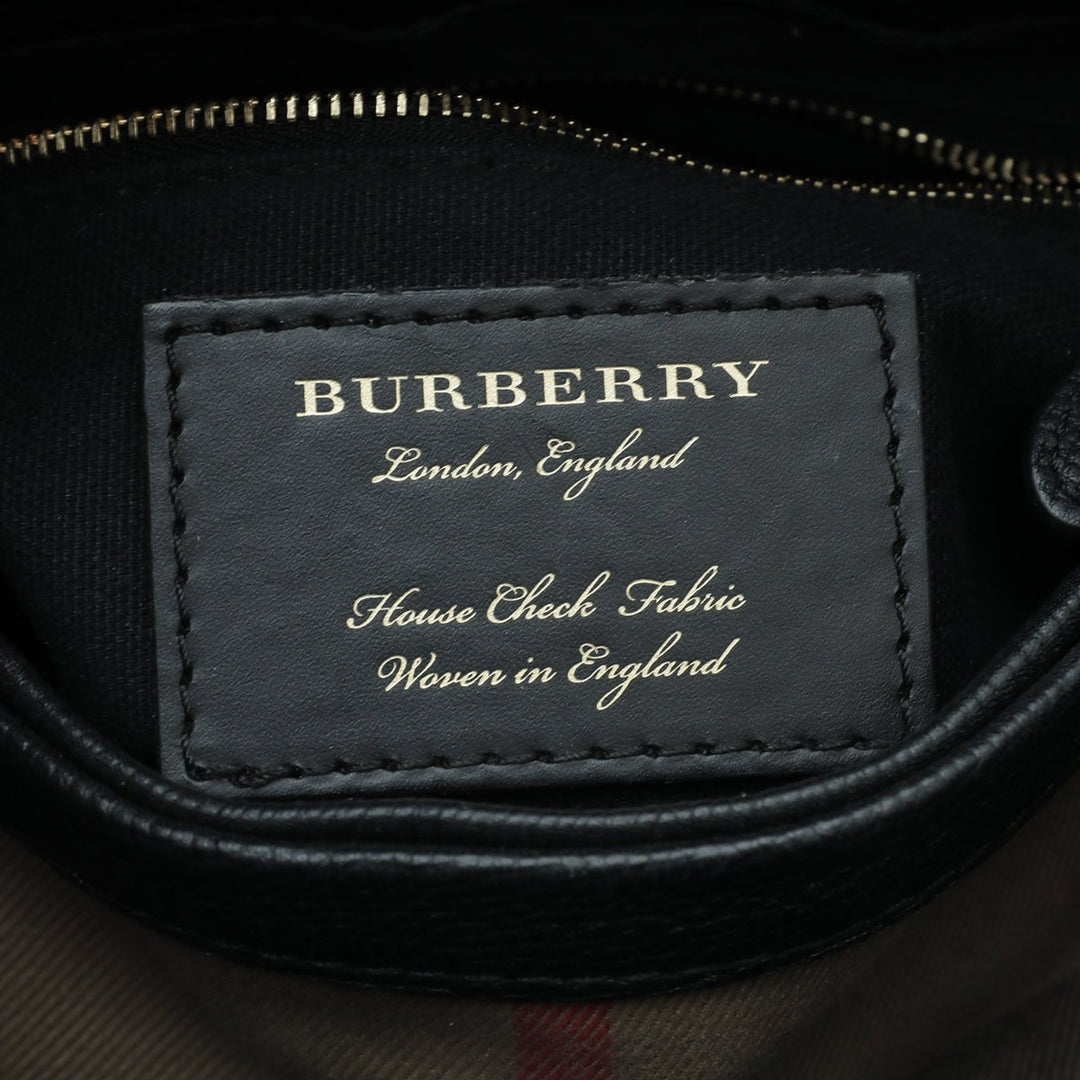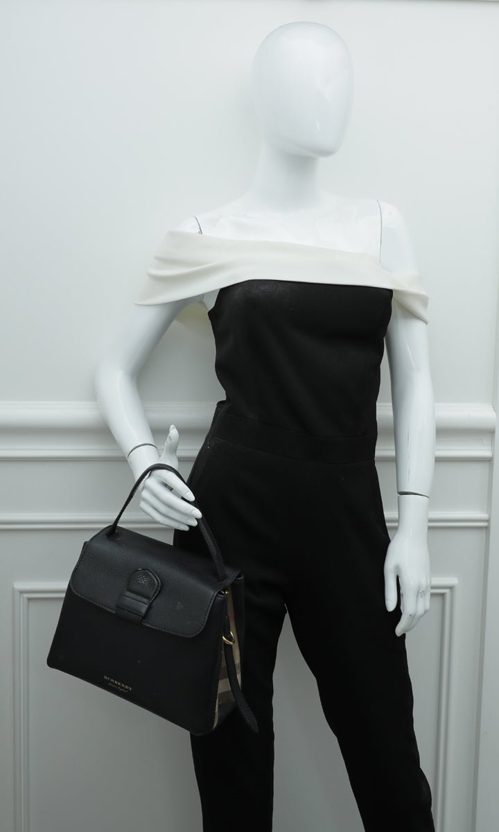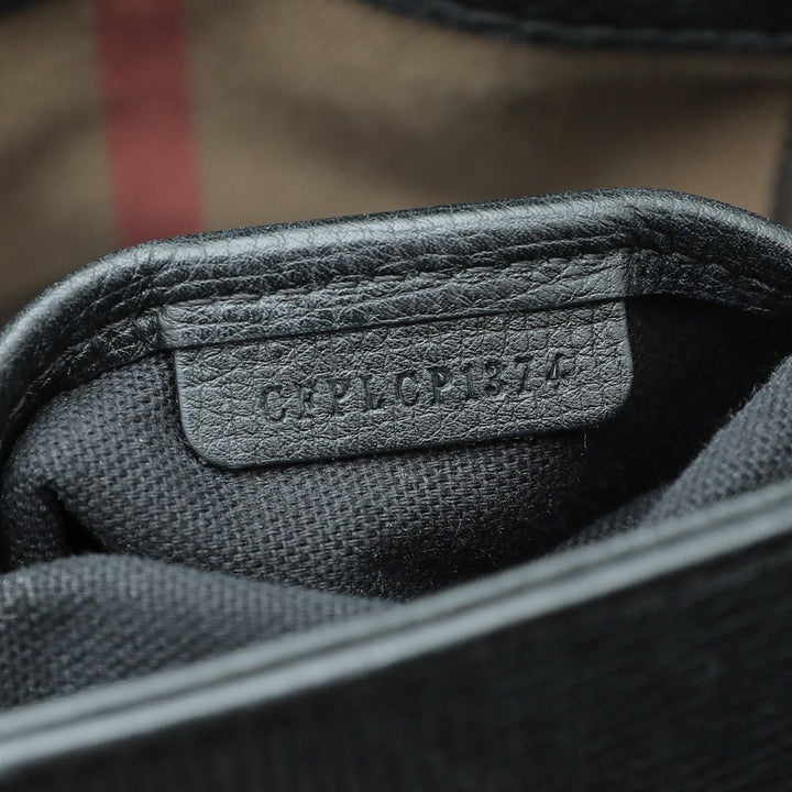 - Material: Black Leather and House Check Canvas Trim