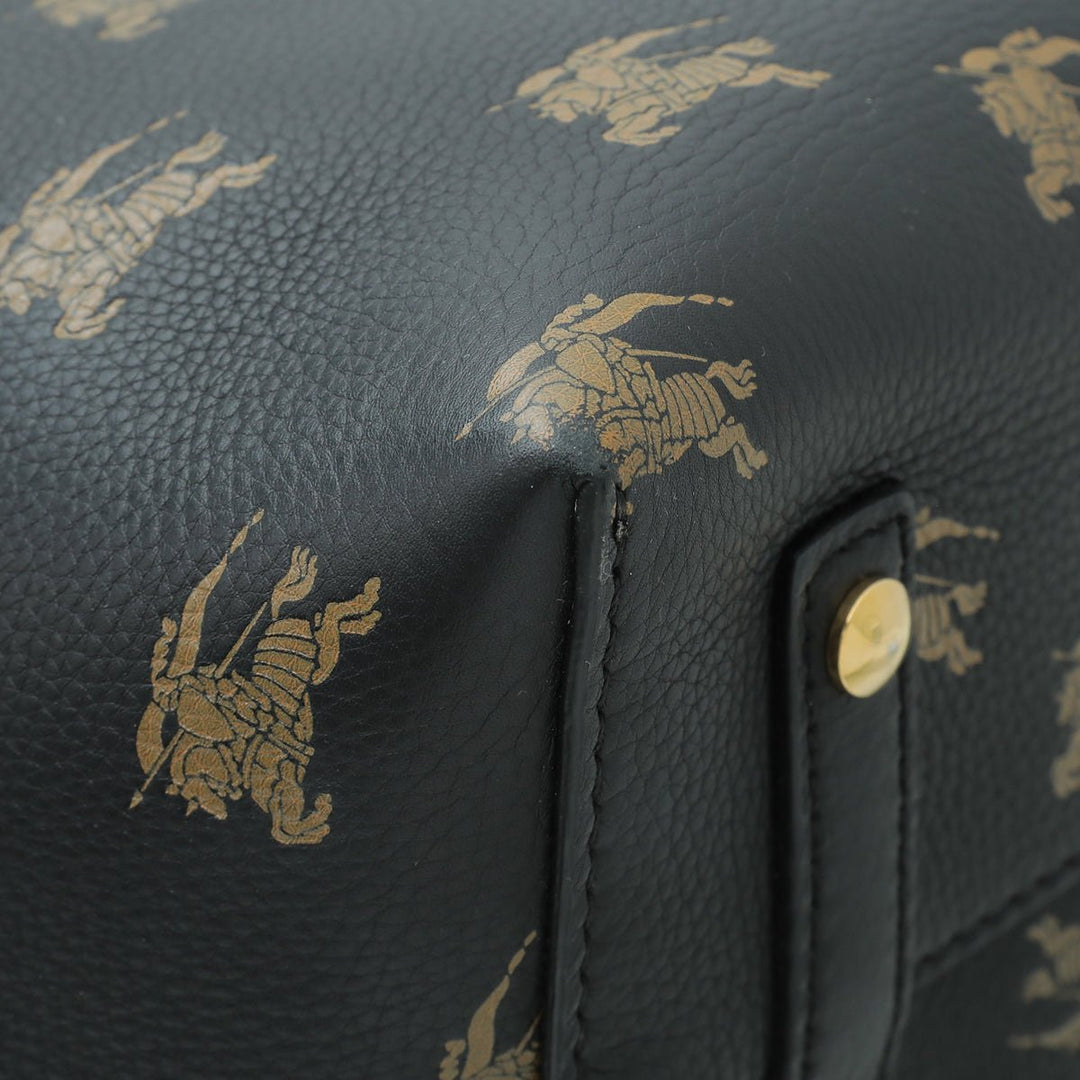 - Material: Black Leather with Equestrian Knight Motifs Print