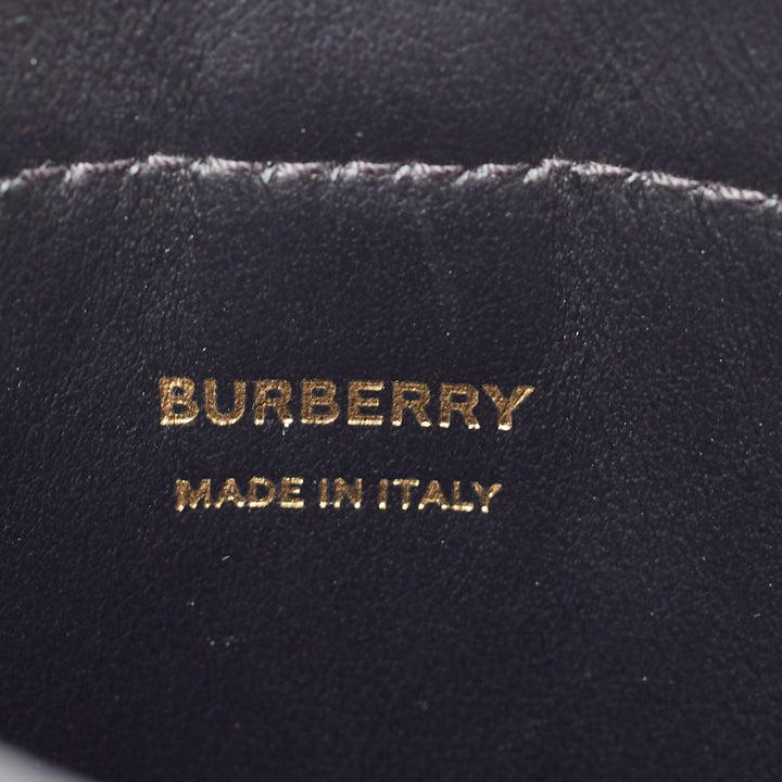 This Burberry accessory is a fine choice to carry your phone and cards. It is crafted using leather and secured by a little TB metal accent.