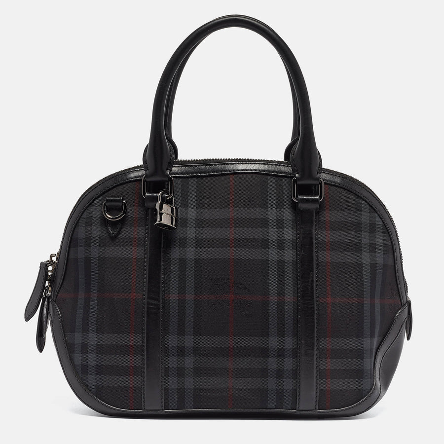BURBERRY Black Haymarket Check Nylon and Leather Orchard Bag
