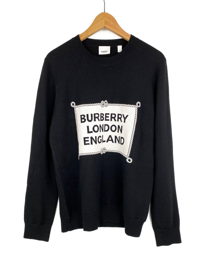 Description : Fabulous Burberry relaxed-fit wool jumper with white 'Burberry, London, England' motif on front. In great condition; mild signs of wear.