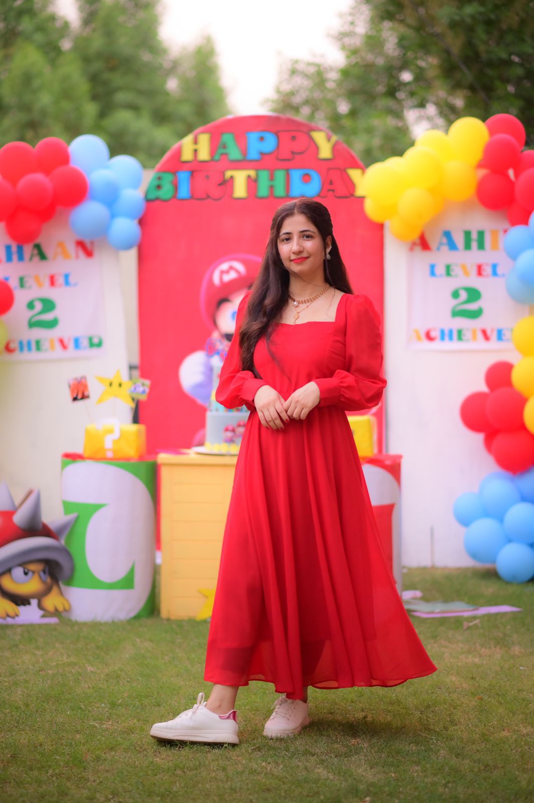 Float through life in our Red Breeze Maxi Dress, a stunning and versatile piece that's perfect for any occasion. Made from plain chiffon fabric, this dress is light and airy, making it ideal. The square neckline and puffy sleeves add a touch of elegance, while the flowing skirt flatters all body types. Dress it up with a pair of heels and a statement necklace for a special event, or dress it down with sneakers and a scarf for a more casual look. The Red Breeze Maxi Dress is perfect for birthdays, weddings, vacations, or just a day out on the town.