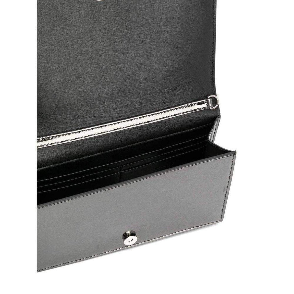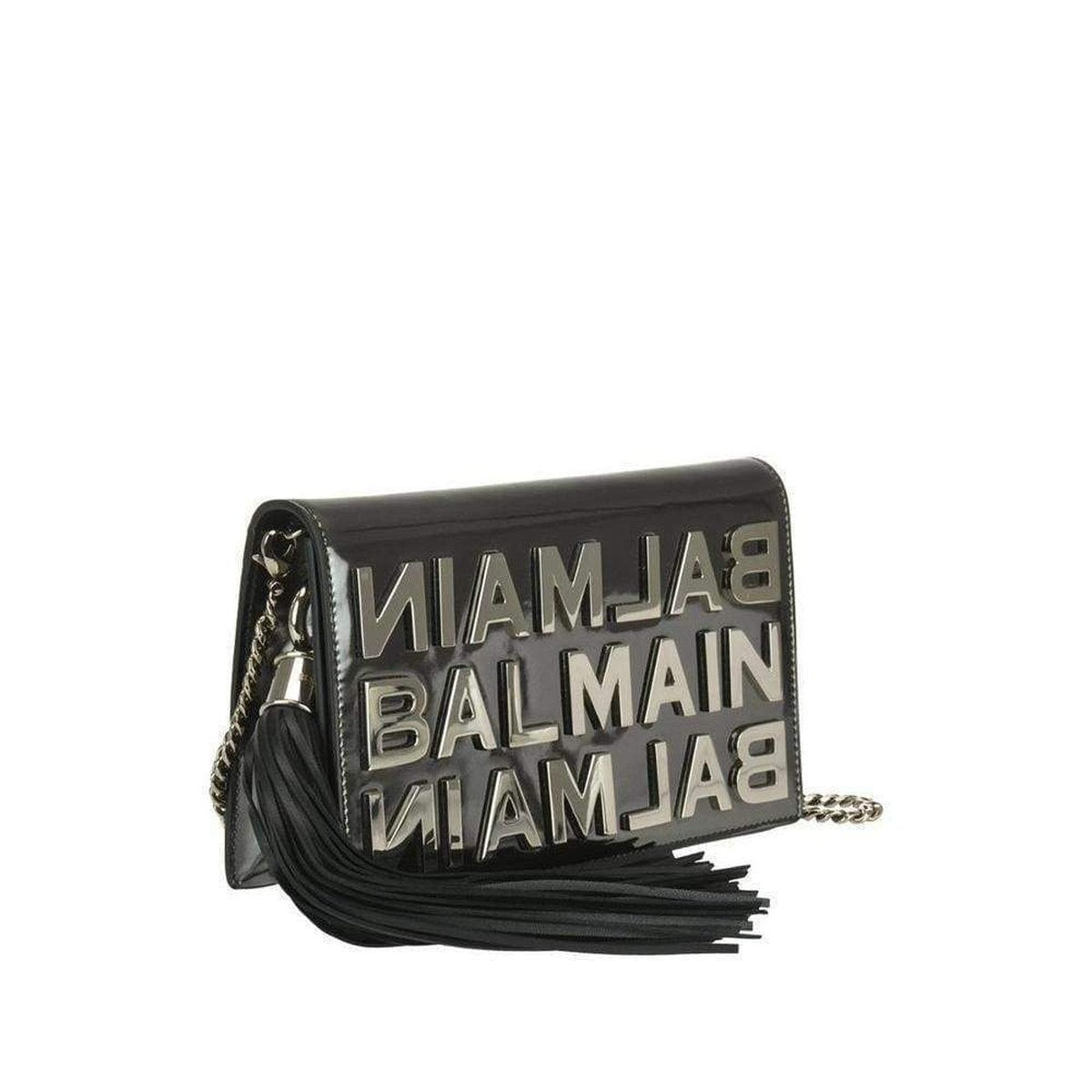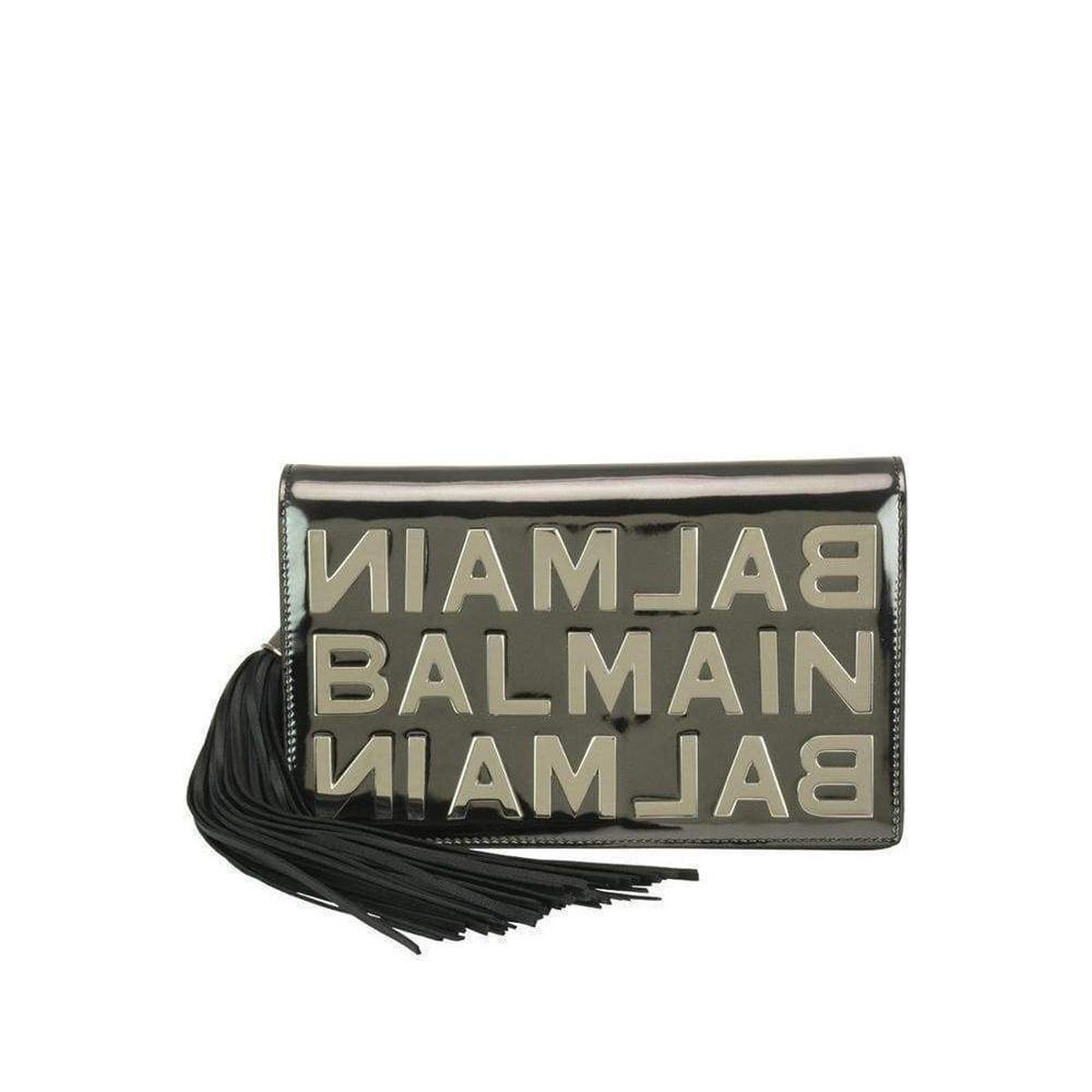 The overflap with magnet closure, the removable silver chain shoulder strap and the black leather tassel, complete the evening bag.