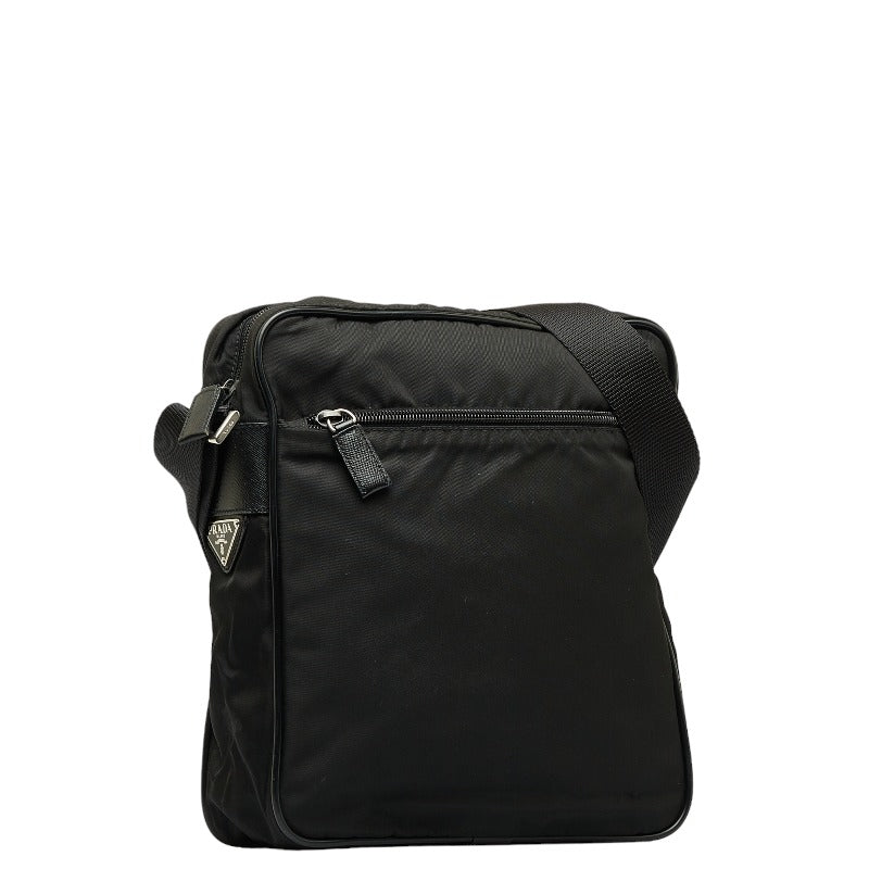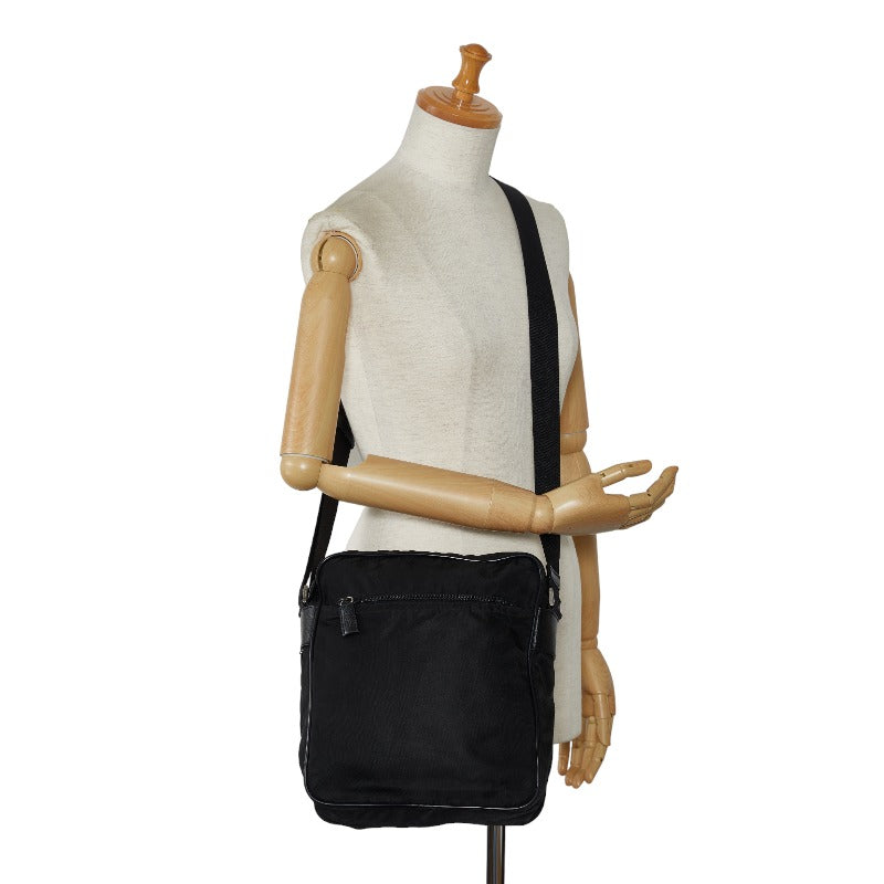 Prada Nylon Leather Triangle Logo Plate Shoulder Bag in Good Condition