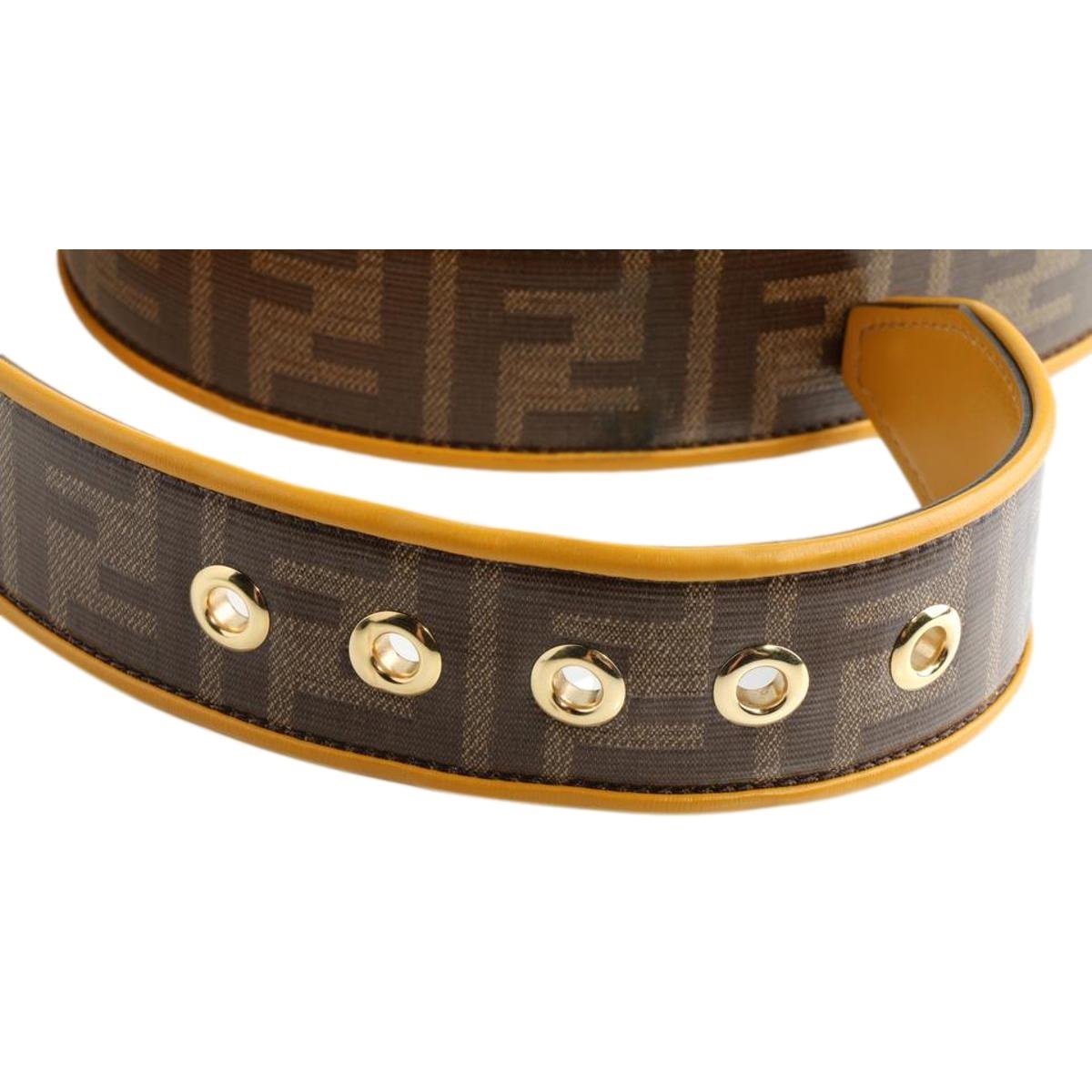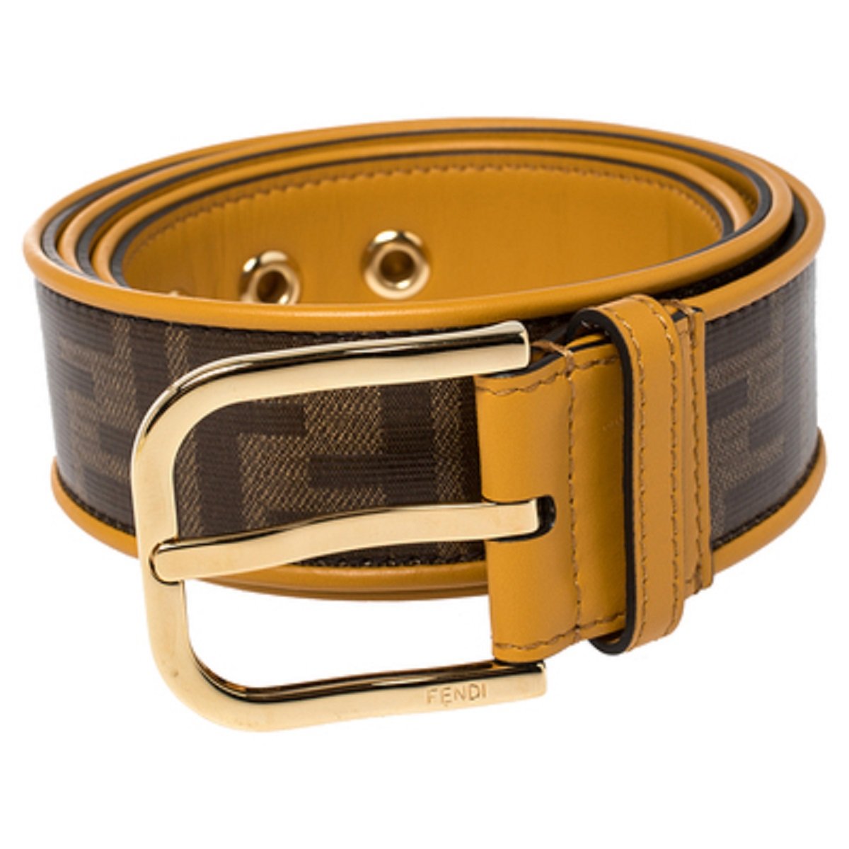 Fendi FF Logo Zucca Brown Yellow Leather Trim Belt 7C0400 Size 100/40