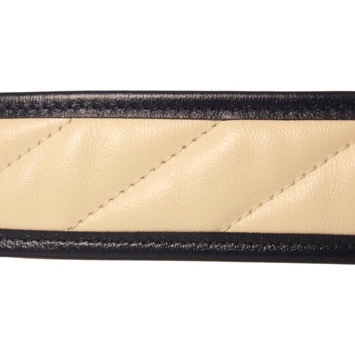 This elegant belt is crafted from two-tone white and navy calfskin leather with a diagonal quilted design throughout. The classic Torchon interlocking GG buckle and belt loop are made with an antique gold-tone hardware. Pair this belt with any outfit for an elevated look.