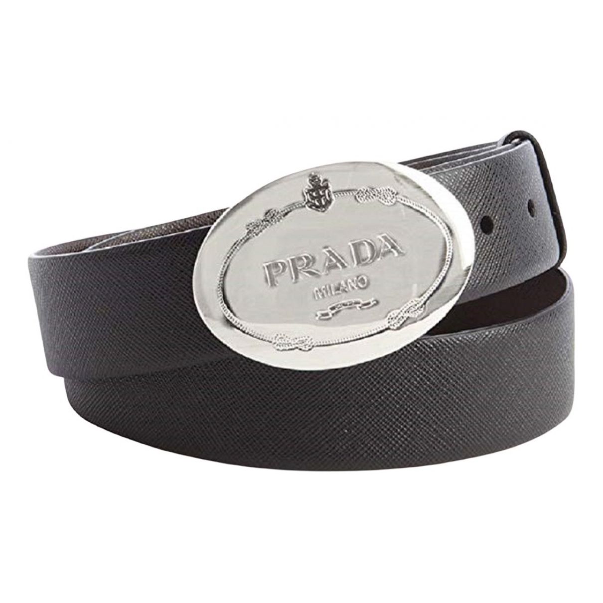 Prada Black Saffiano Leather Engraved Oval Plaque Buckle Size: 110/44 Belt 2CM046