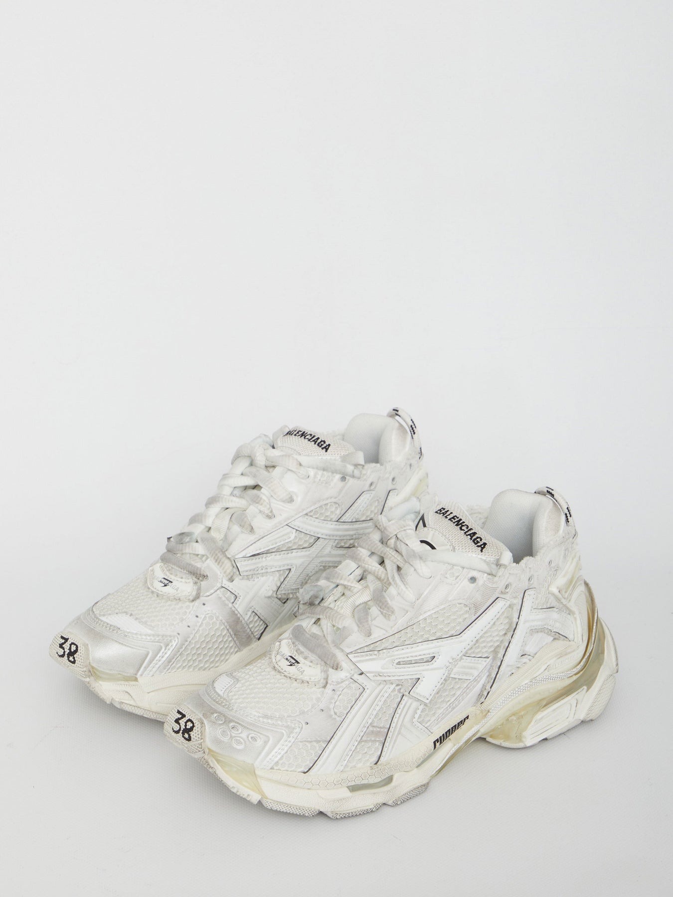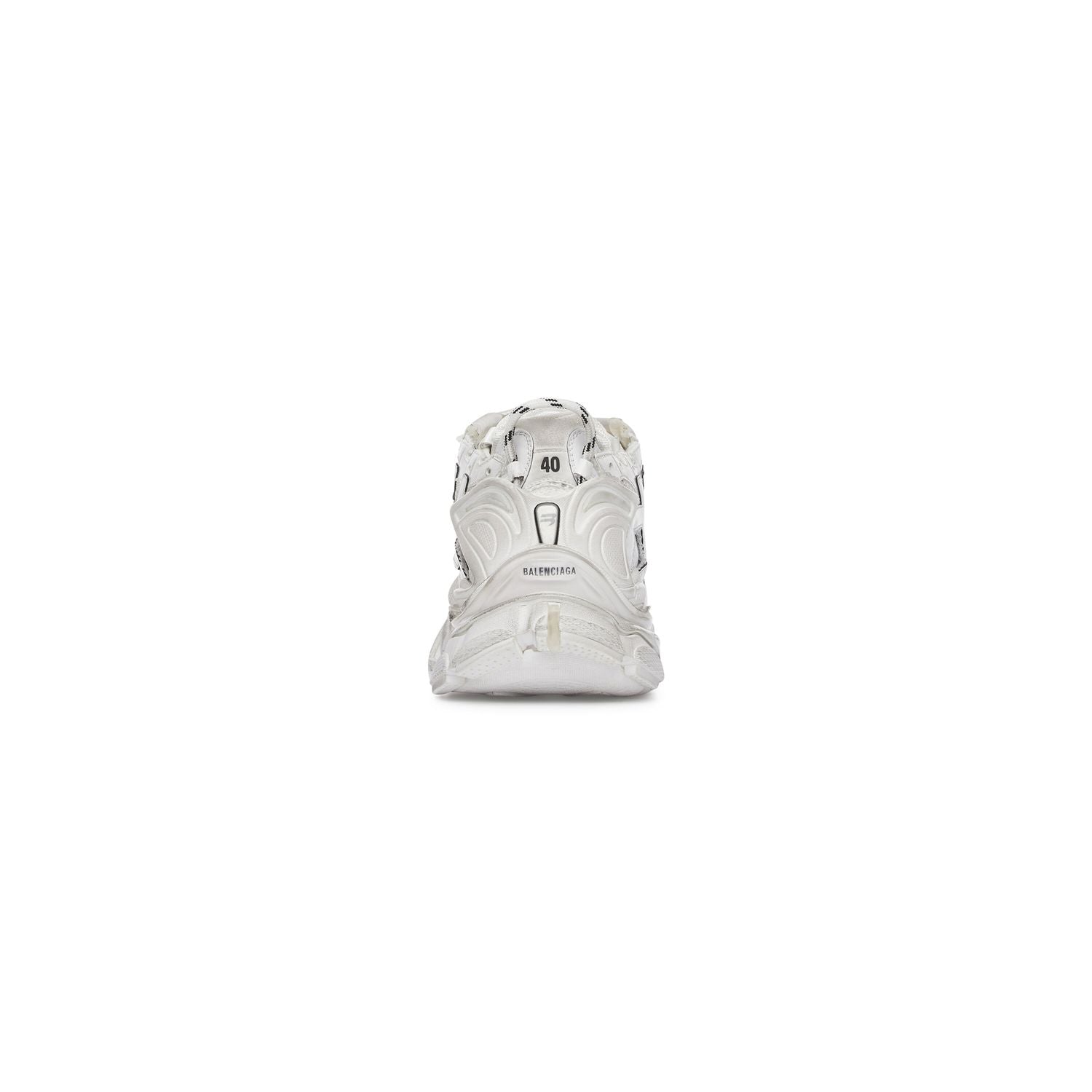 Step up your sneaker game with these high-fashion, luxury runner sneakers. Crafted with a -out effect, these white mesh and nylon sneakers are the epitome of casual chic. Showcasing the printed size on the toe and back, along with the iconic Balenciaga logo on the tongue and back, these sneakers are a must-have for any fashionista.