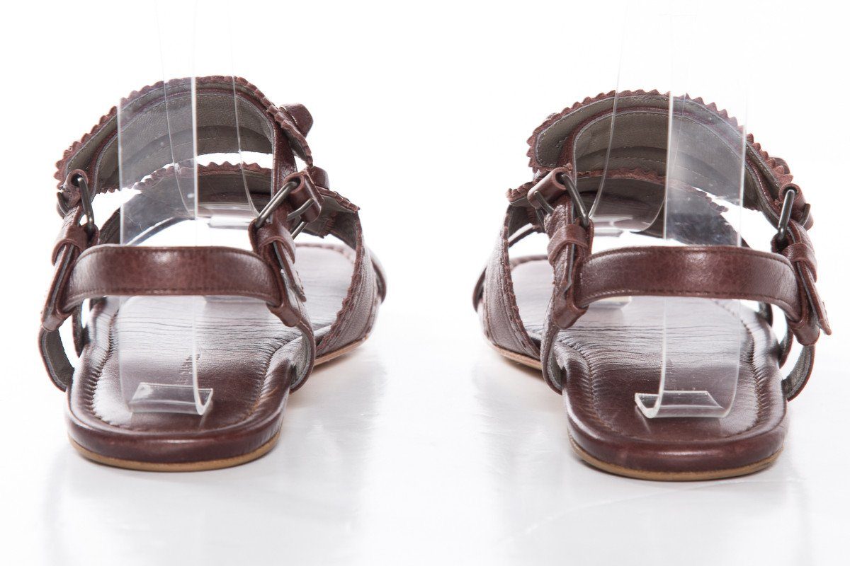Balenciaga leather Arena multistrap sandals with the tonal stitching throughout, gunmetal buckle closures at ankles and leather and rubber soles.
