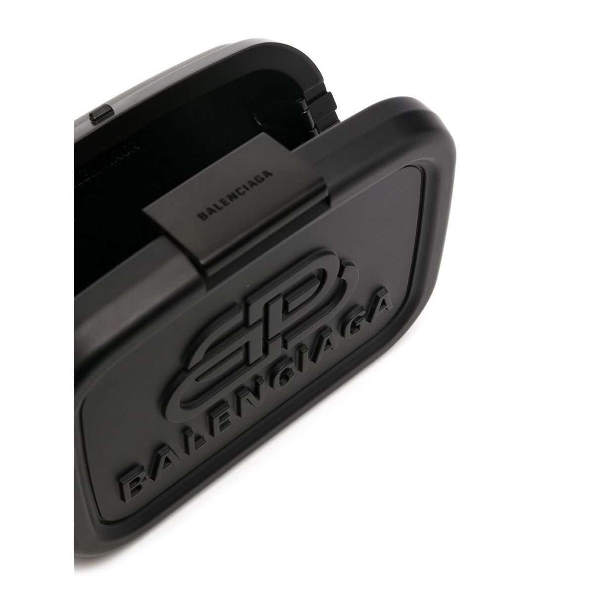 This black Balenciaga Lunch Box shoulder bag is made in Italy from durable, recycled plastic and suspended from a detachable leather strap. It is embossed with an interlocking BB and a logo to the front. This Balenciaga bag offers a first class transportation experience for our crackers and carrot sticks.