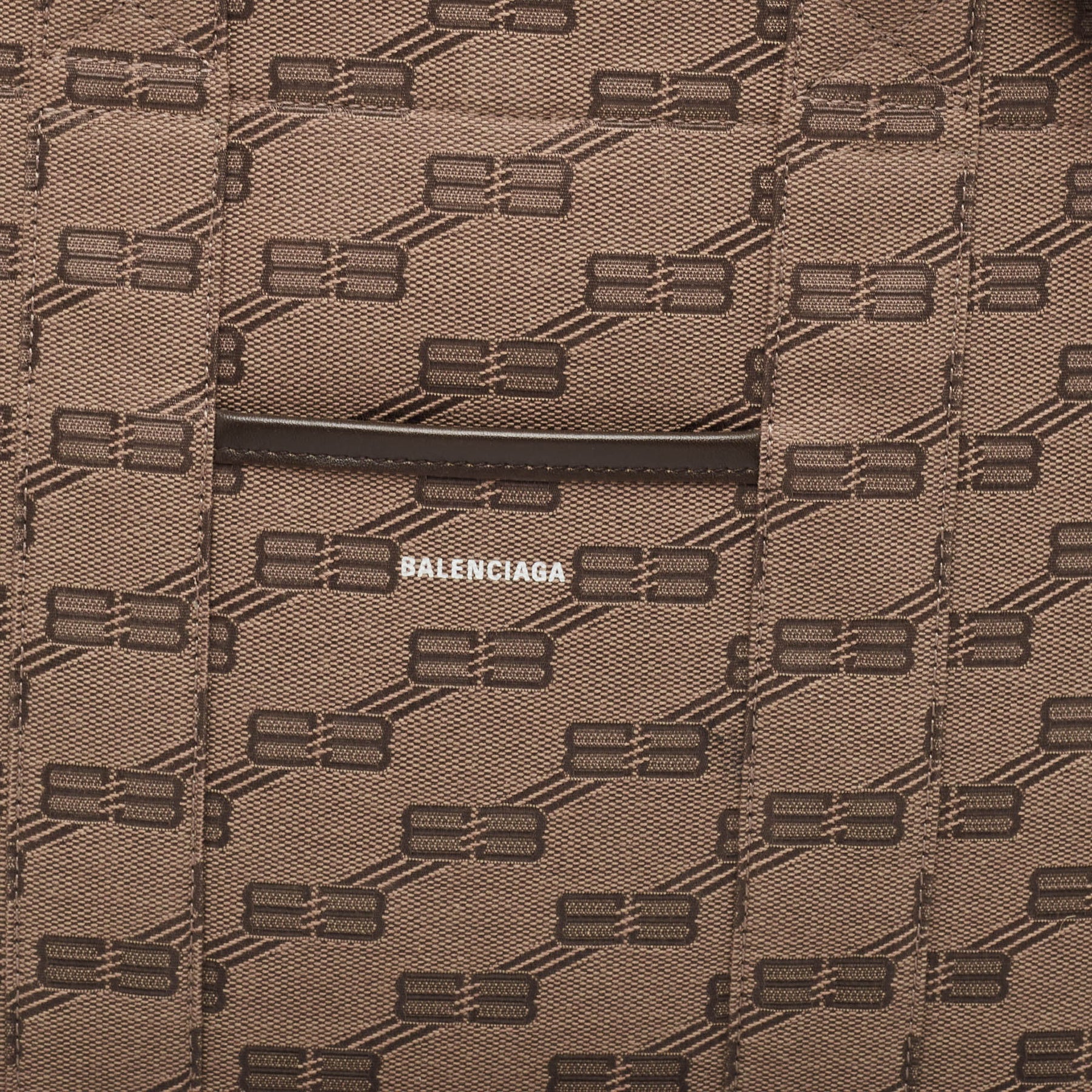 BALENCIAGA Beige/Brown BB Monogram Canvas and Leather Medium Hardware Tote