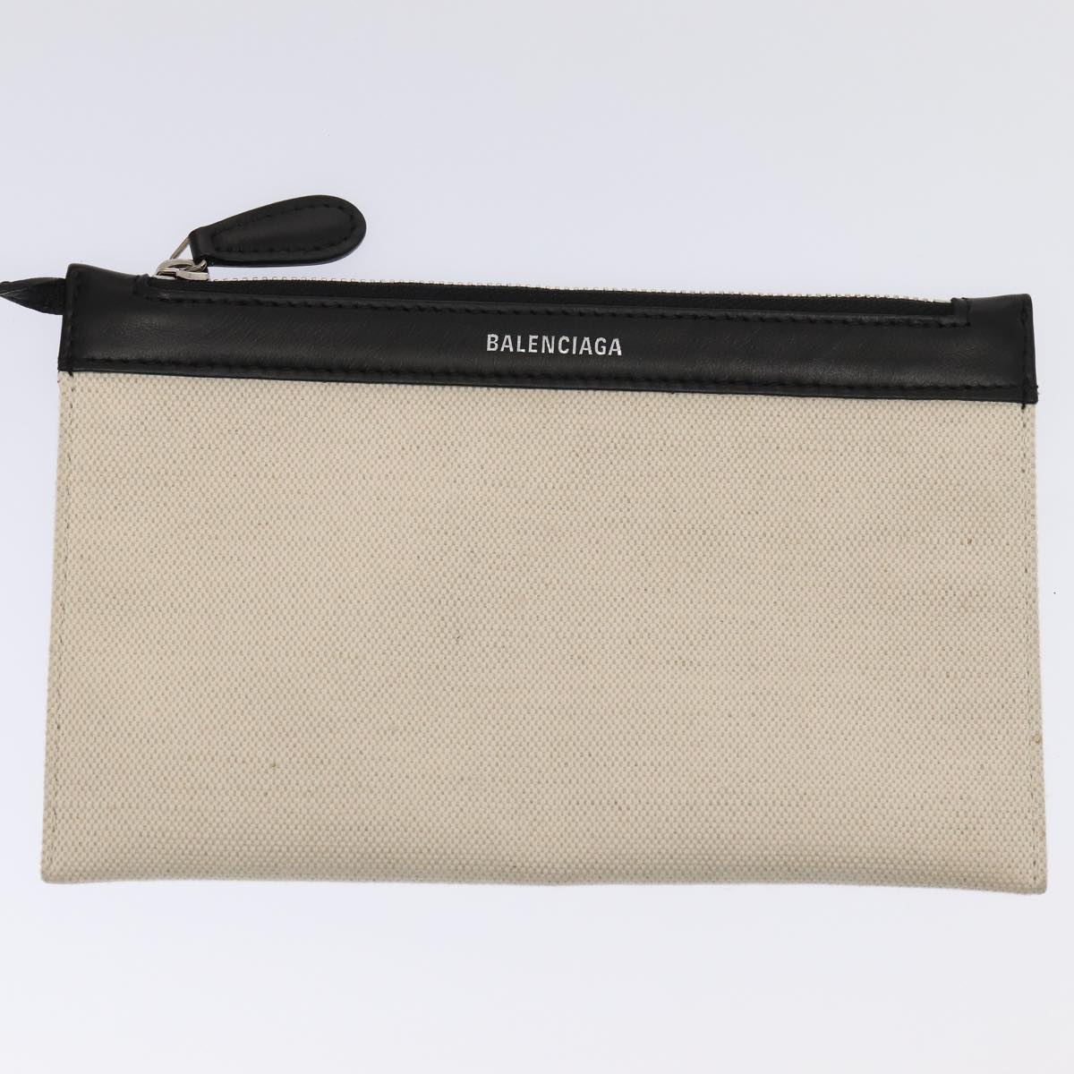 BALENCIAGA Cabas Hand Bag Canvas Silver White Auth ep5384