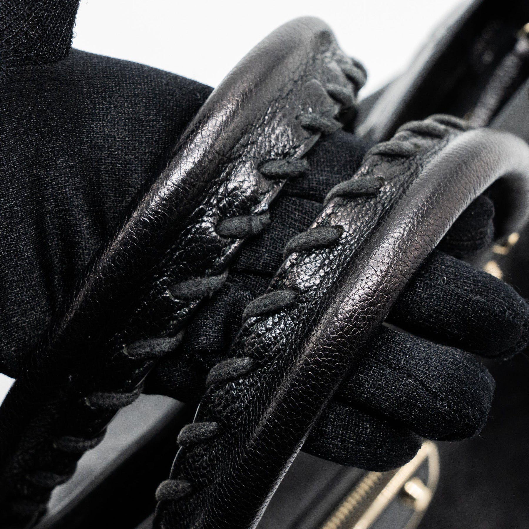 Well New (This item is in very New condition with slight scratches on hardware, slight rubbing on handle, thread loose at top edge, slight sign of use inside)