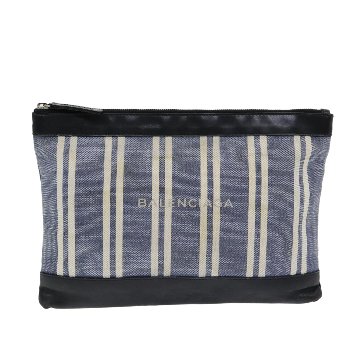 BALENCIAGA Clutch Bag Canvas Leather Blue Black Silver 420407 Auth bs16618