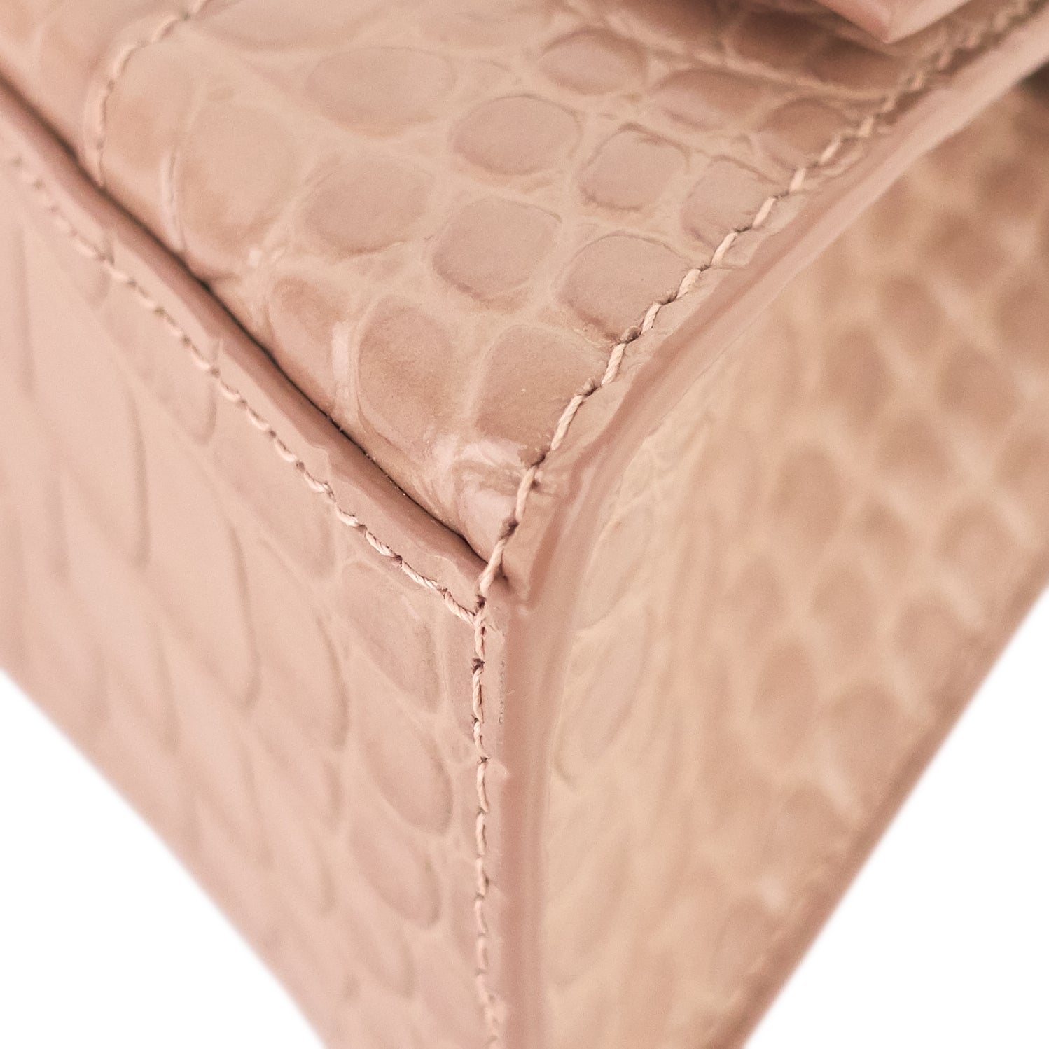 BALENCIAGA Hourglass XS Croc Embossed Leather Top Handle Bag