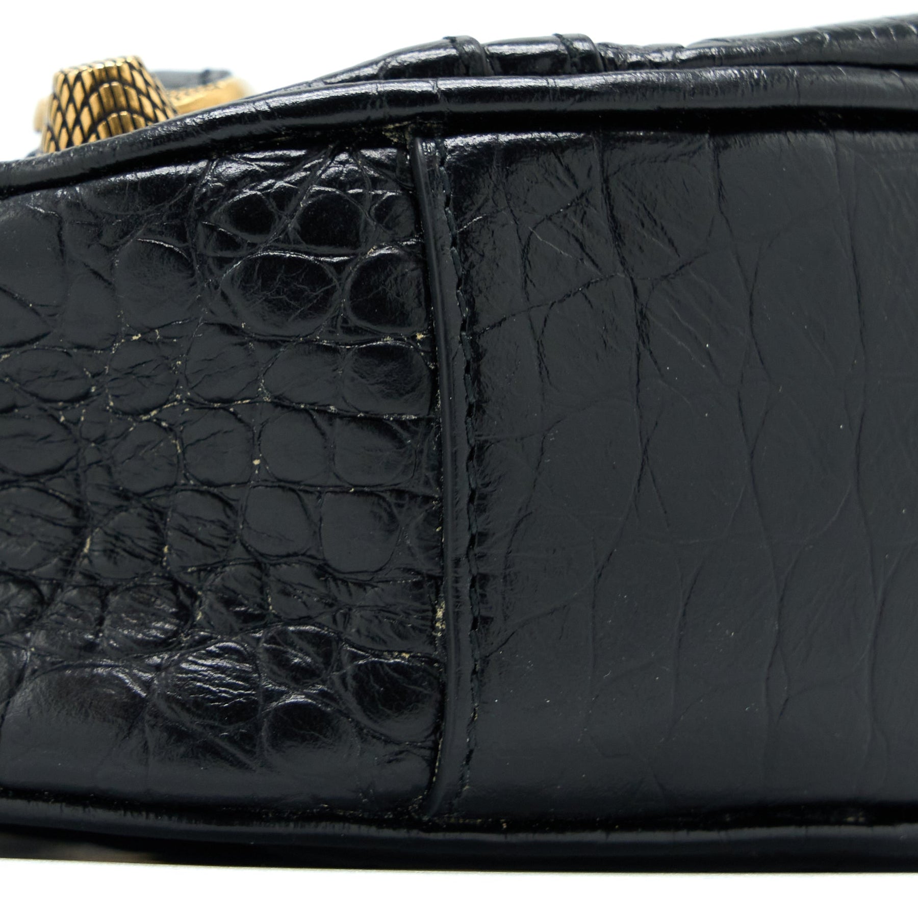 Top Quality Balenciaga Le Cagole XS Shoulder Bag Croc-Embossed Calfskin Black Aged-Gold Hardware