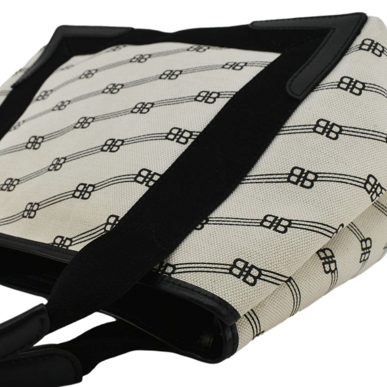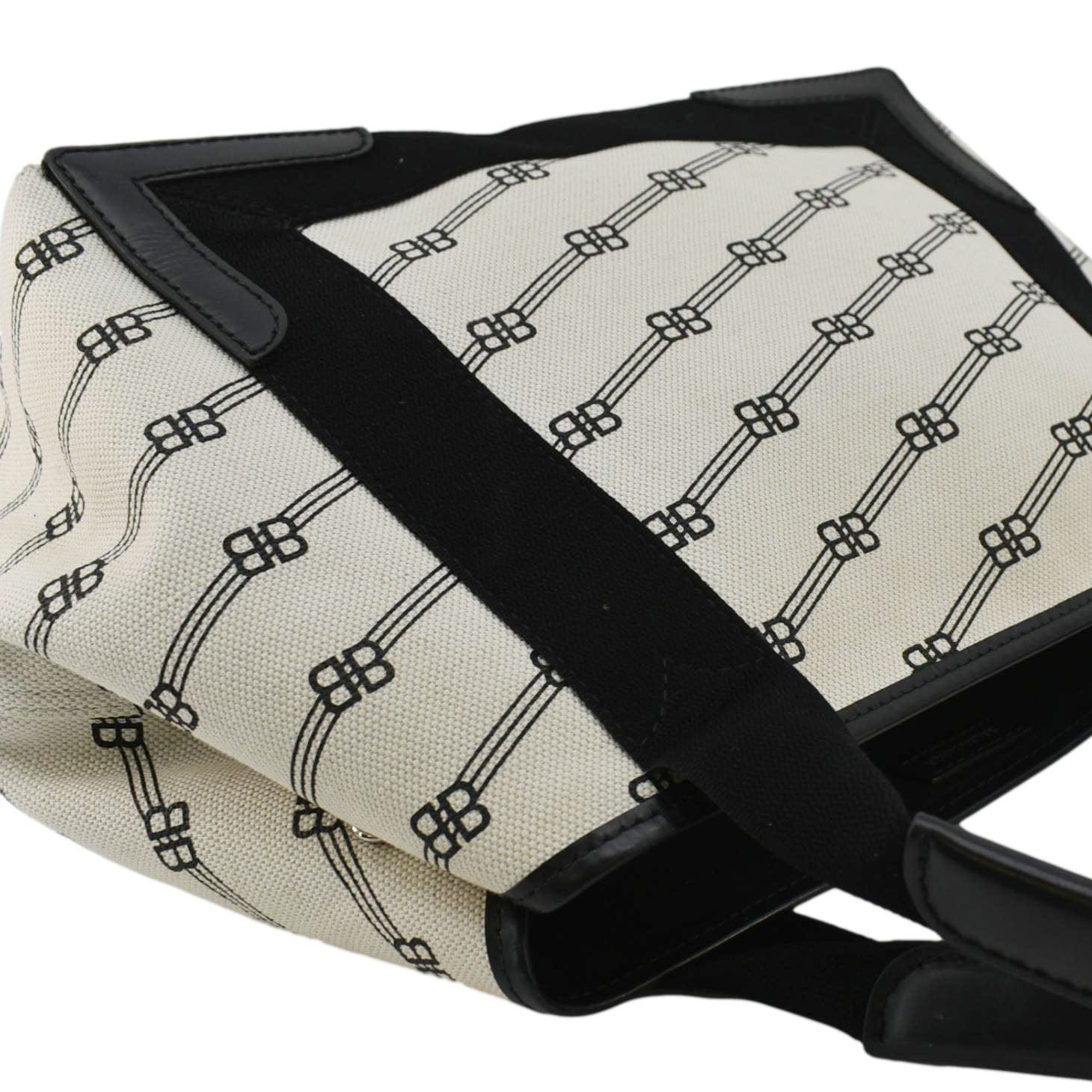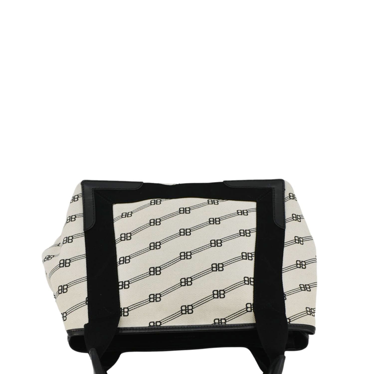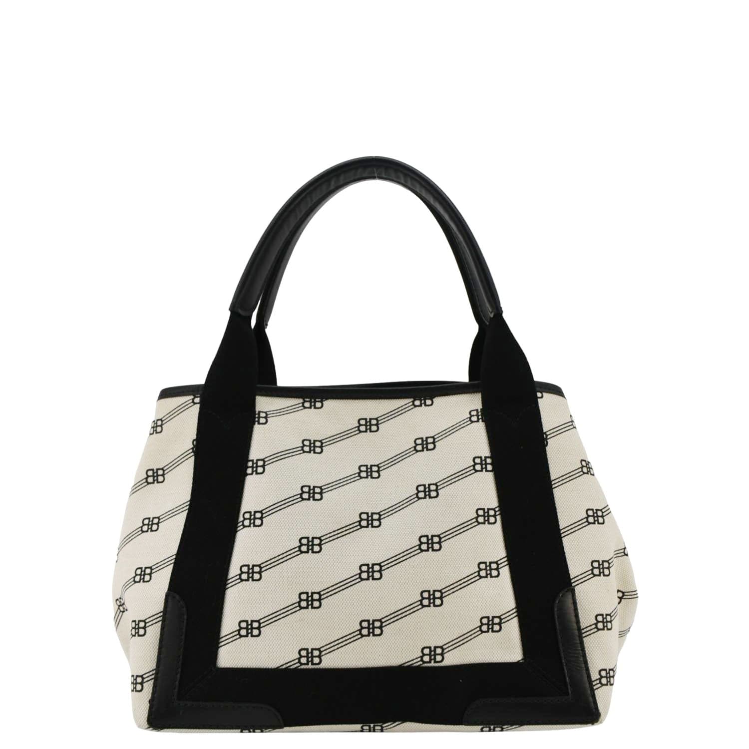 The BALENCIAGA Logo S Navy Cabas Canvas Hobo Bag in White is a spacious, casual bag made from durable canvas with a relaxed hobo silhouette. It features the bold Balenciaga logo in navy blue across the front, contrasting handles, and an open-top design, perfect for effortless, everyday style.