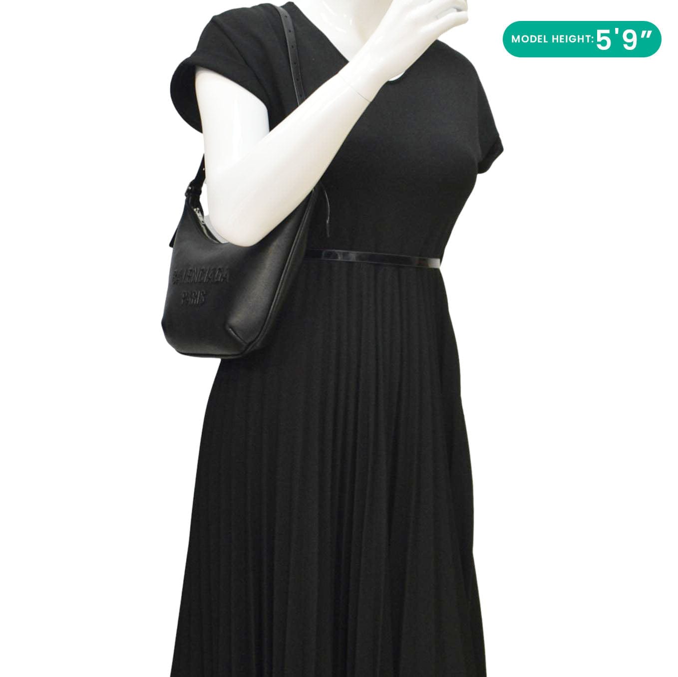 The Balenciaga Mary Kate Leather Shoulder Bag in Black is a sleek, minimalist accessory crafted from smooth leather. Featuring a structured silhouette and subtle detailing, it offers effortless elegance for everyday wear.