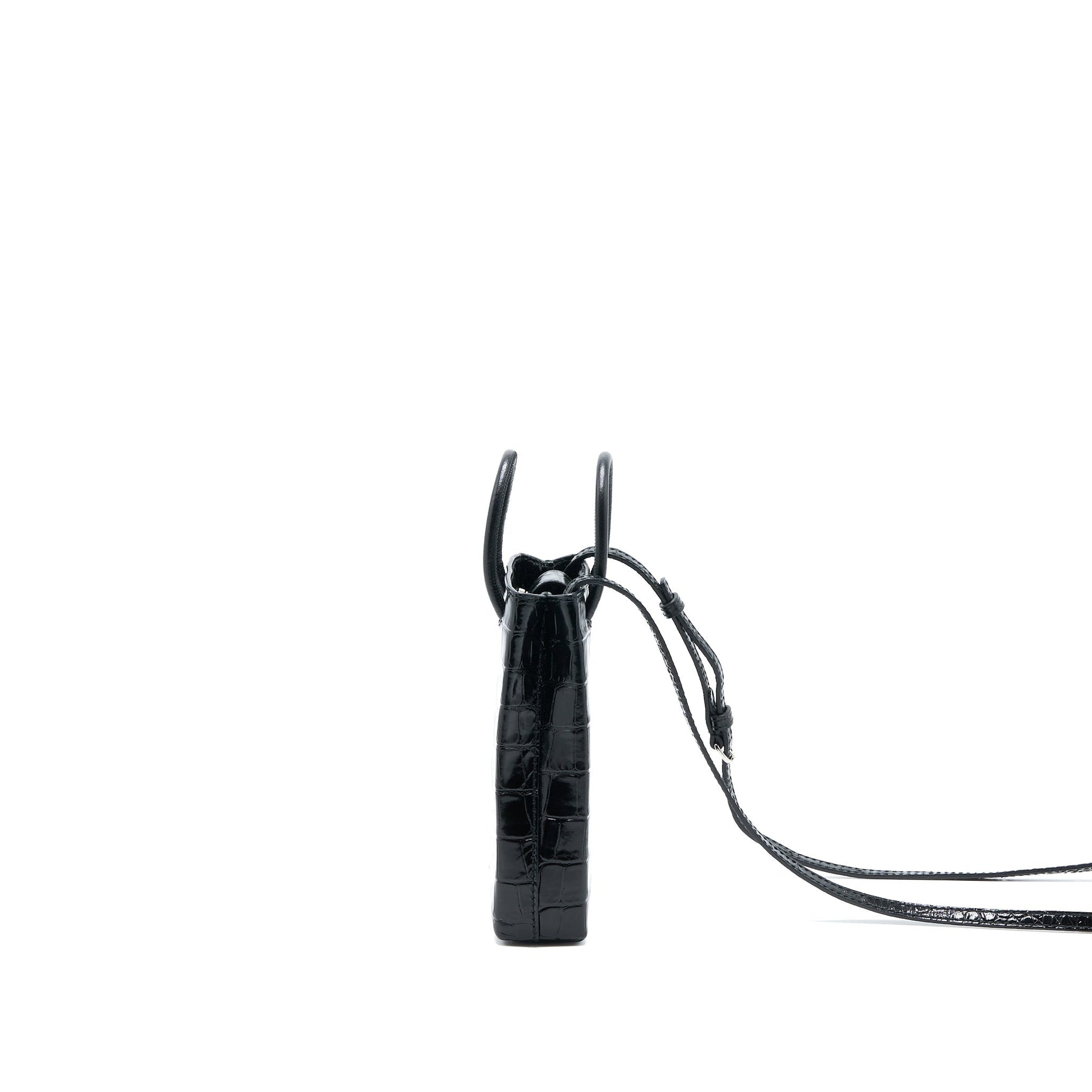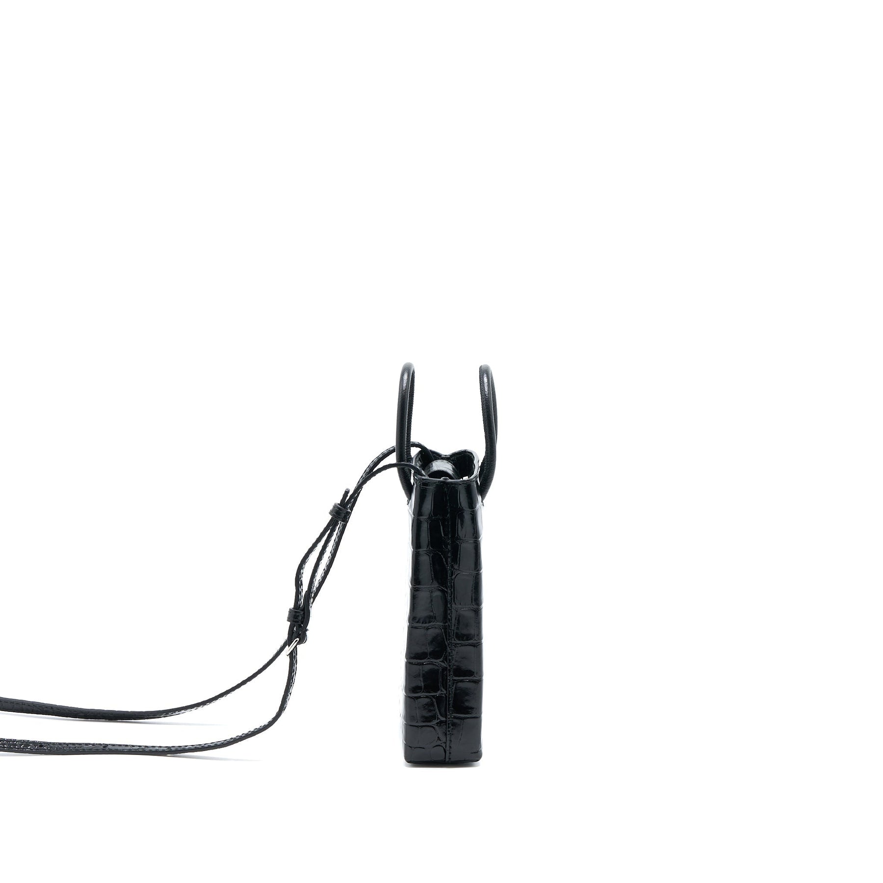 Top Quality Balenciaga Mini Shopping Phone Pouch Coro-Emboss Calfskin Black SHW