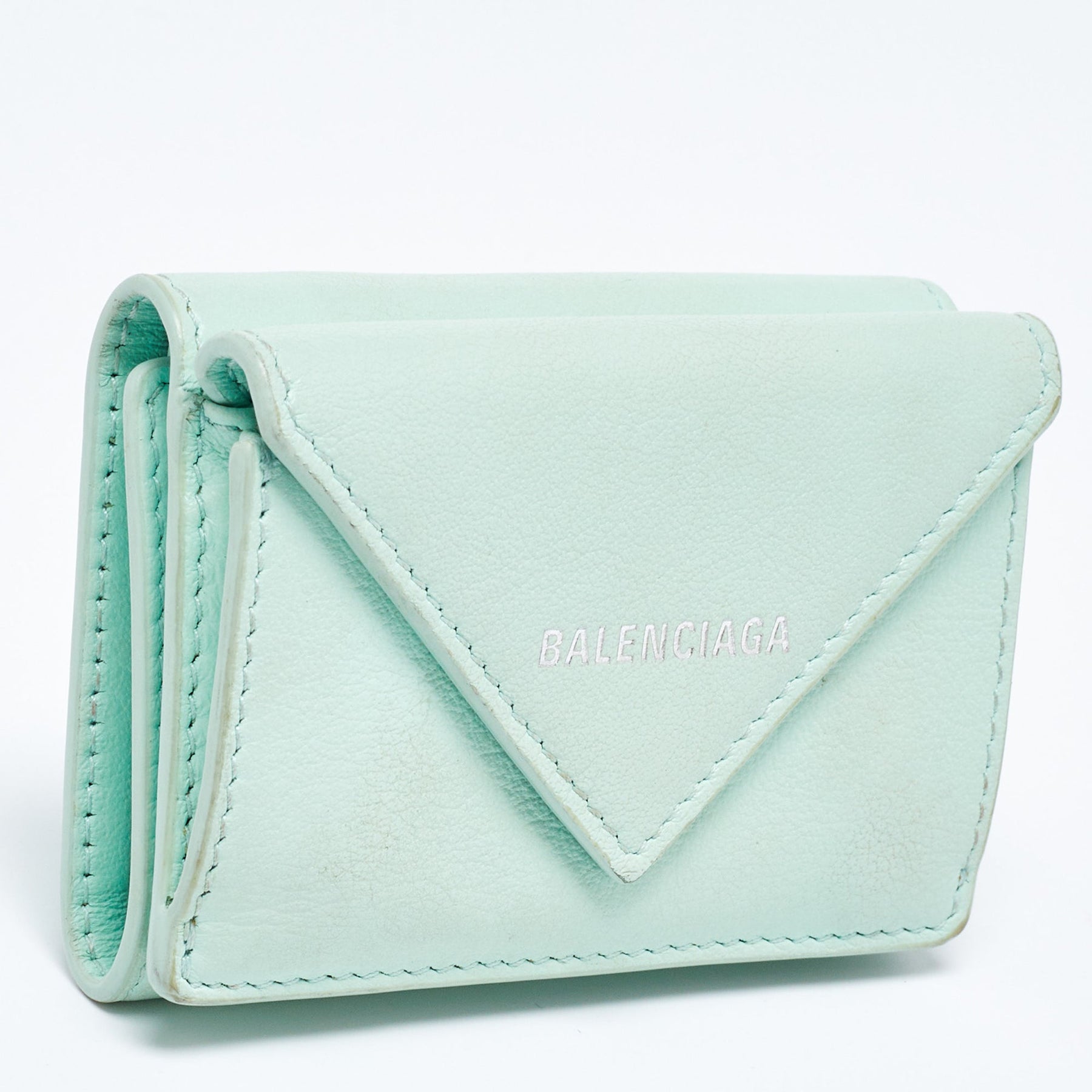 Top Quality Balenciaga Mint Green Leather Mini Papier Wallet