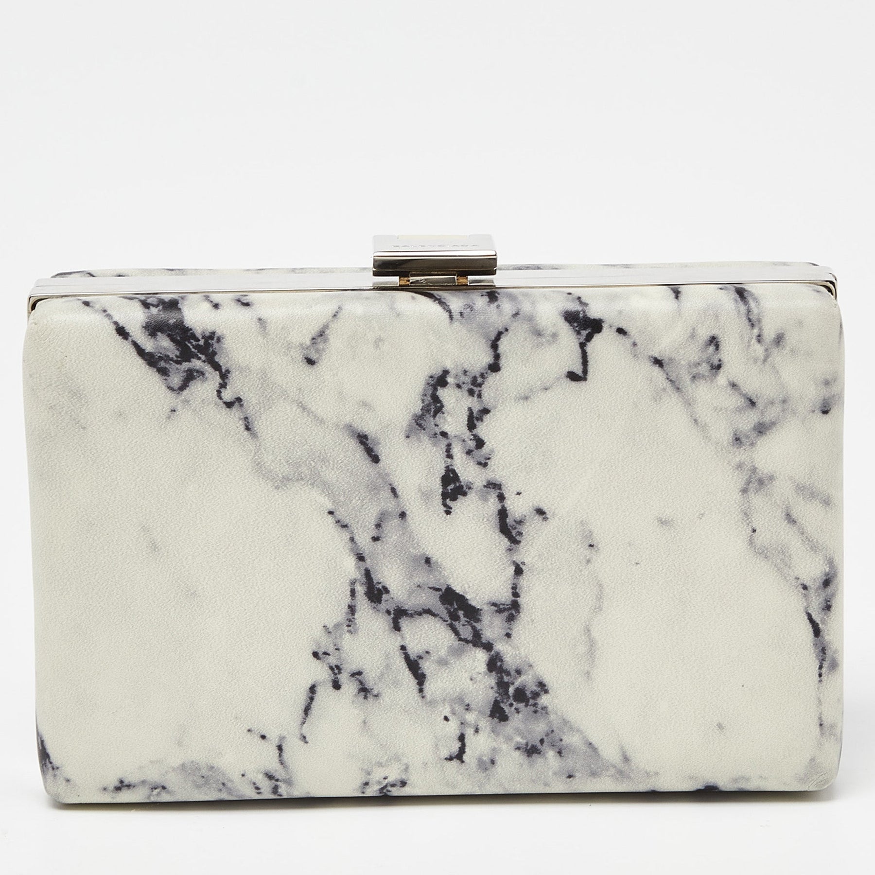 BALENCIAGA Off White/Black Marble Leather Le Dix Minaudiere Box Clutch