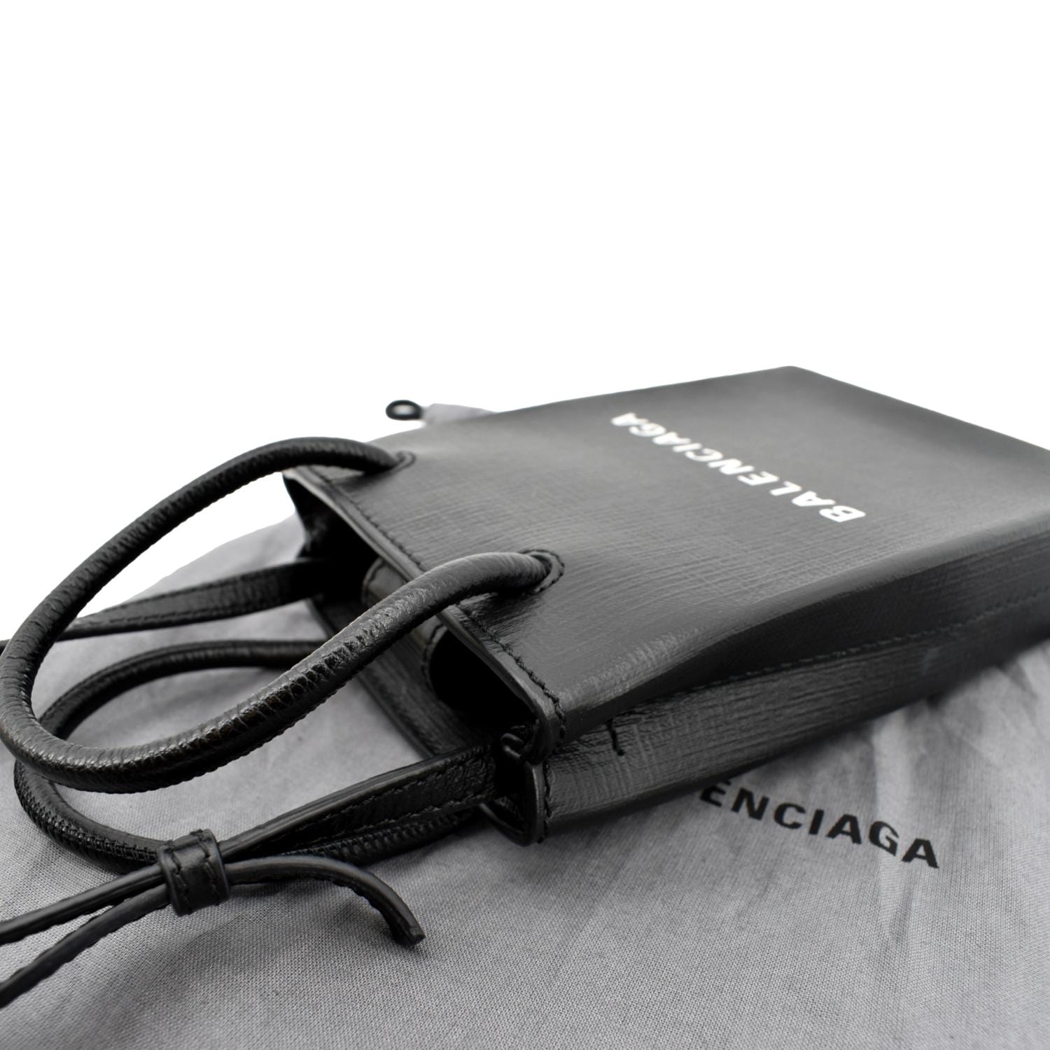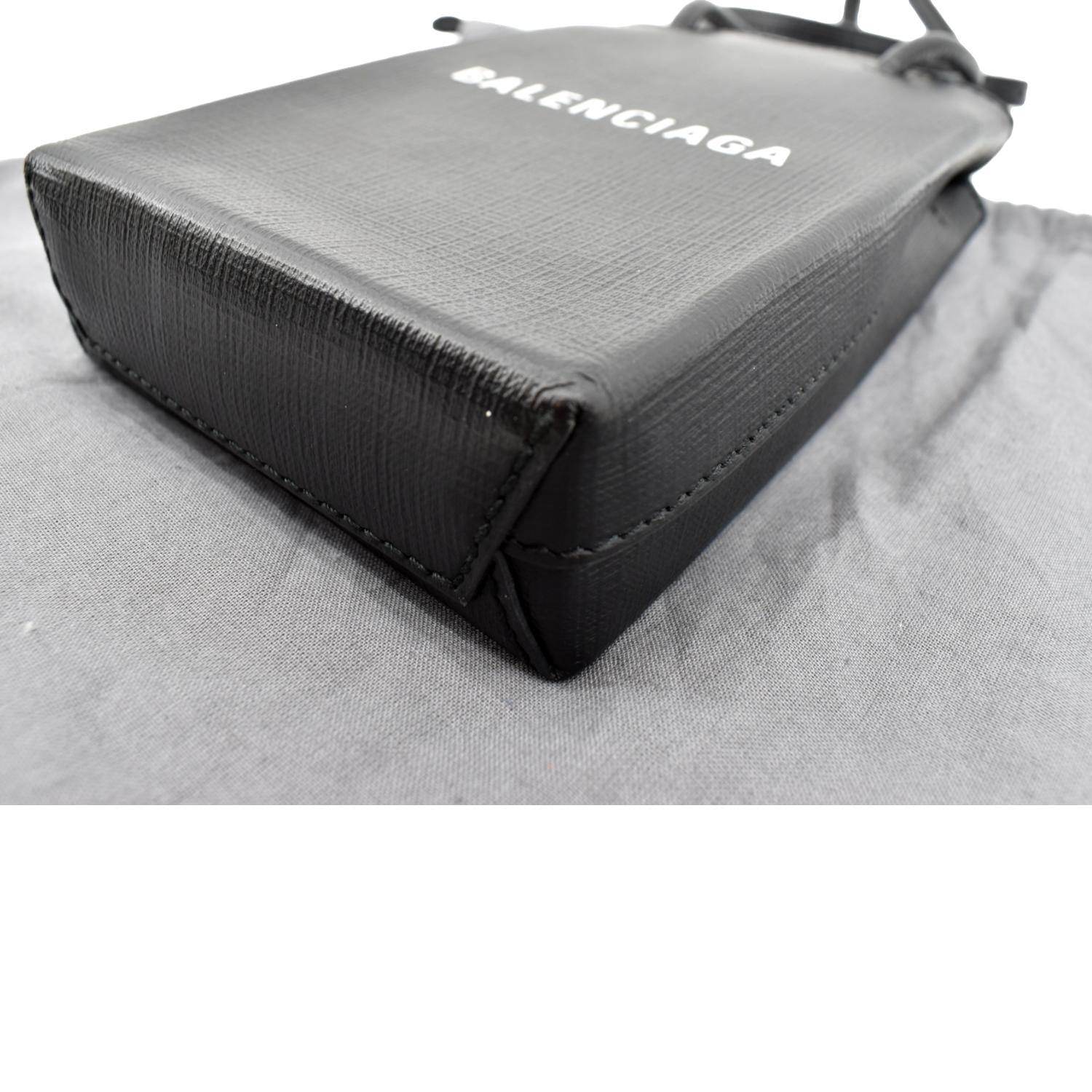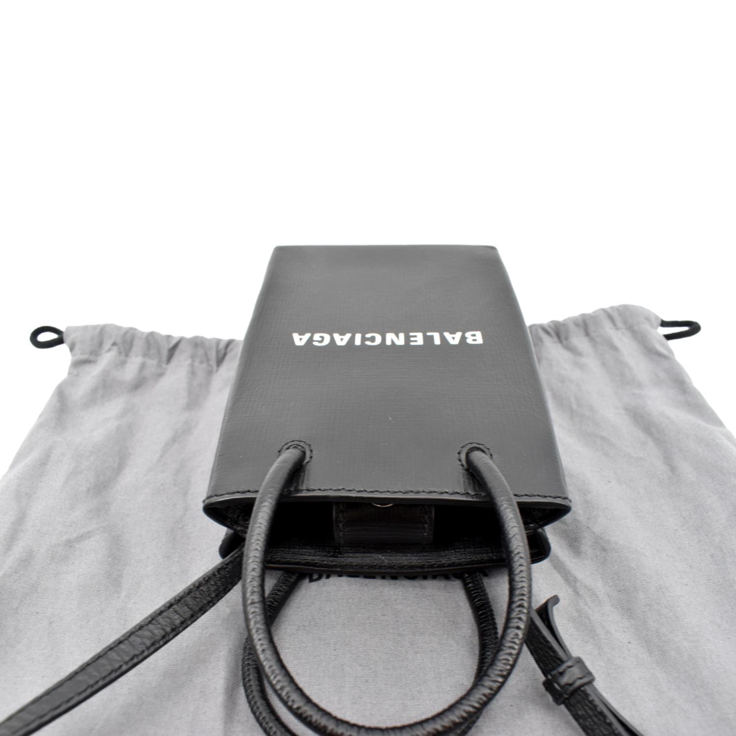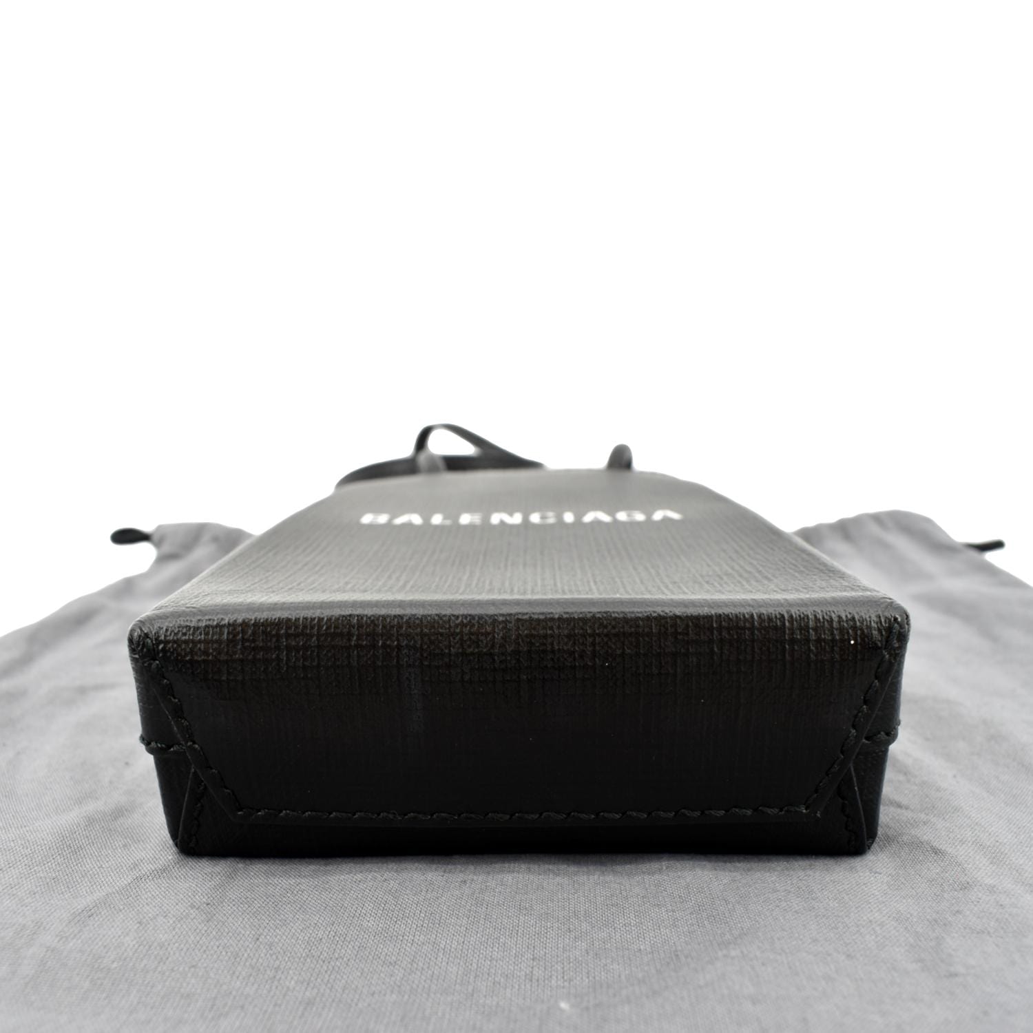 Top Quality Balenciaga Leather Phone Holder Shopping Crossbody Bag Black