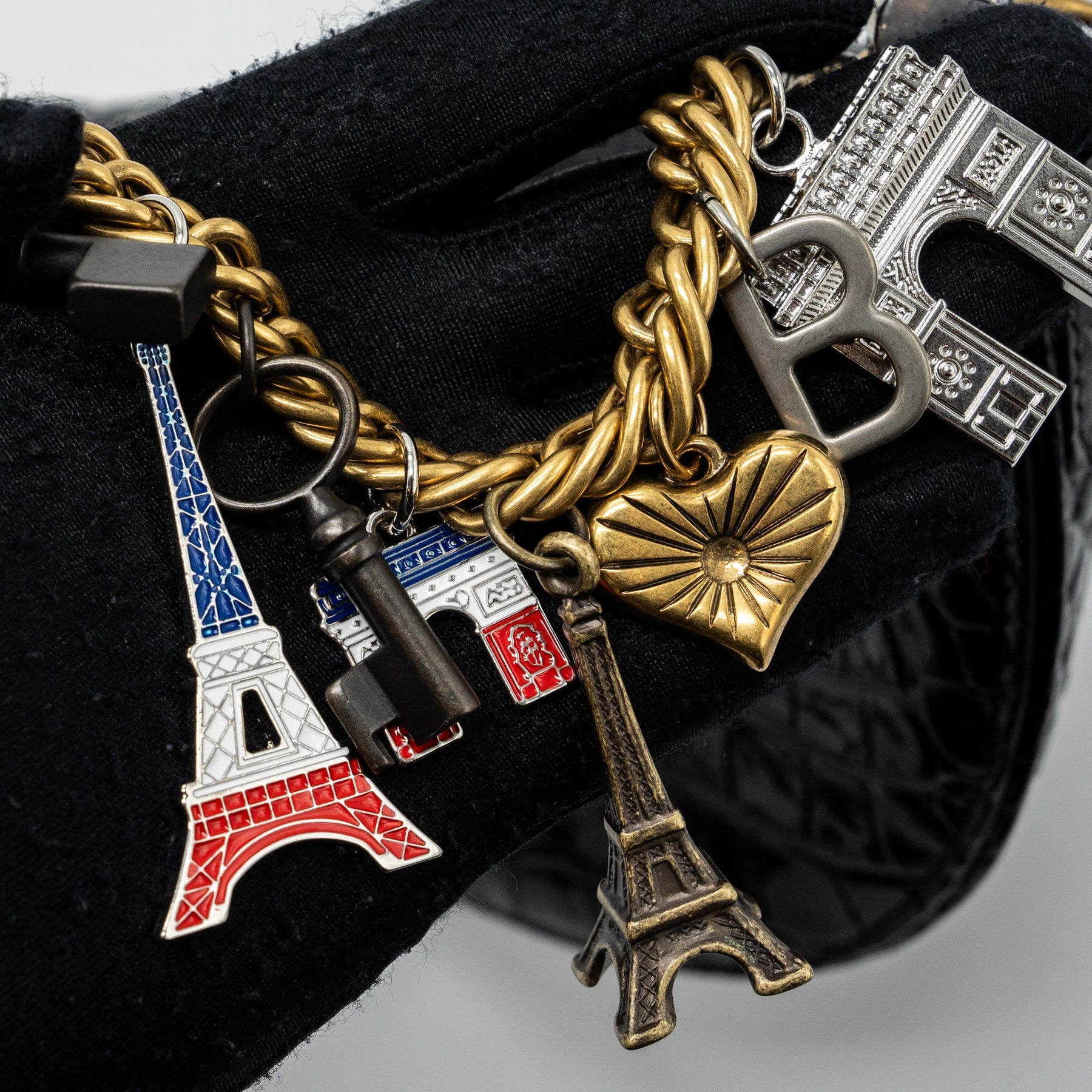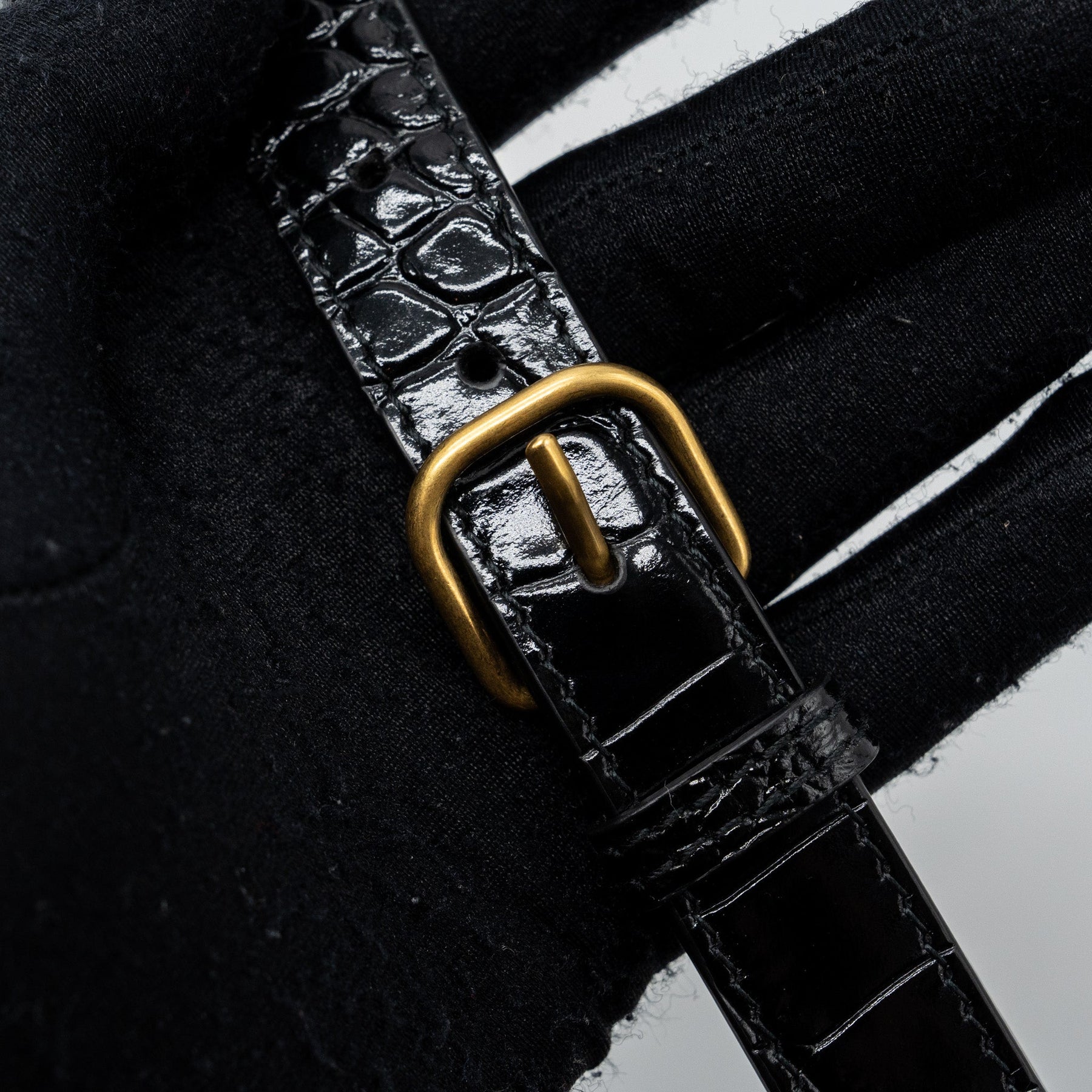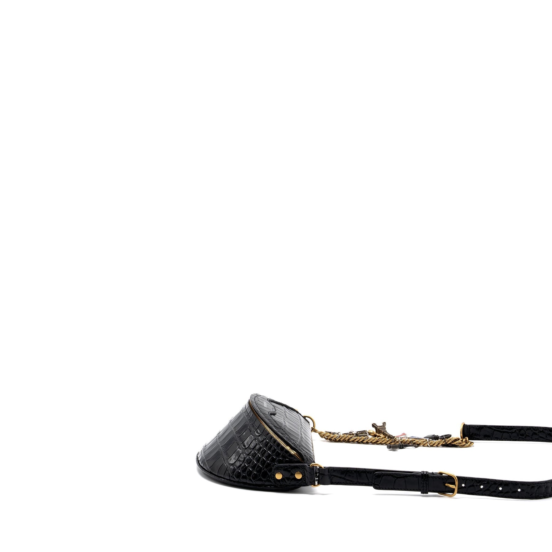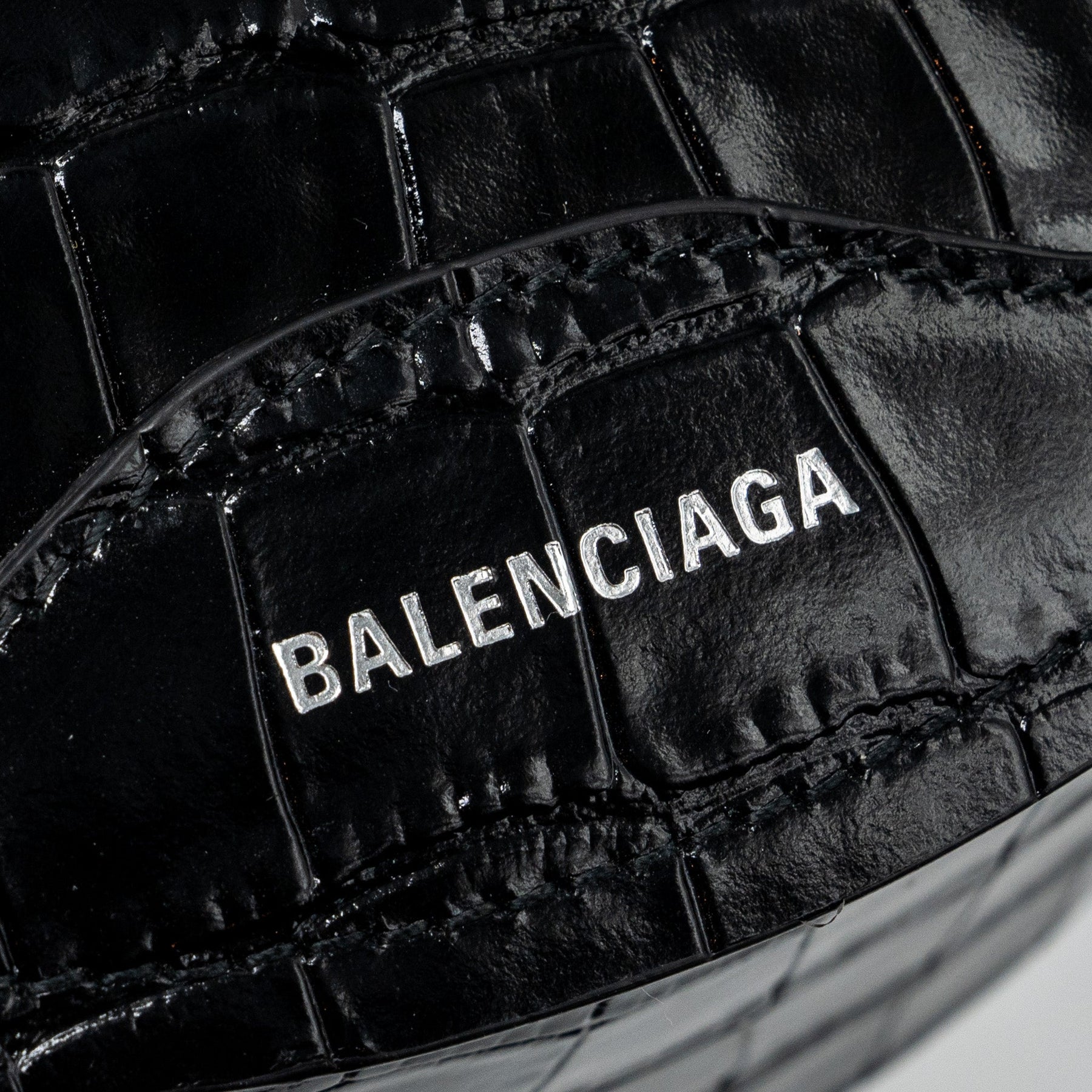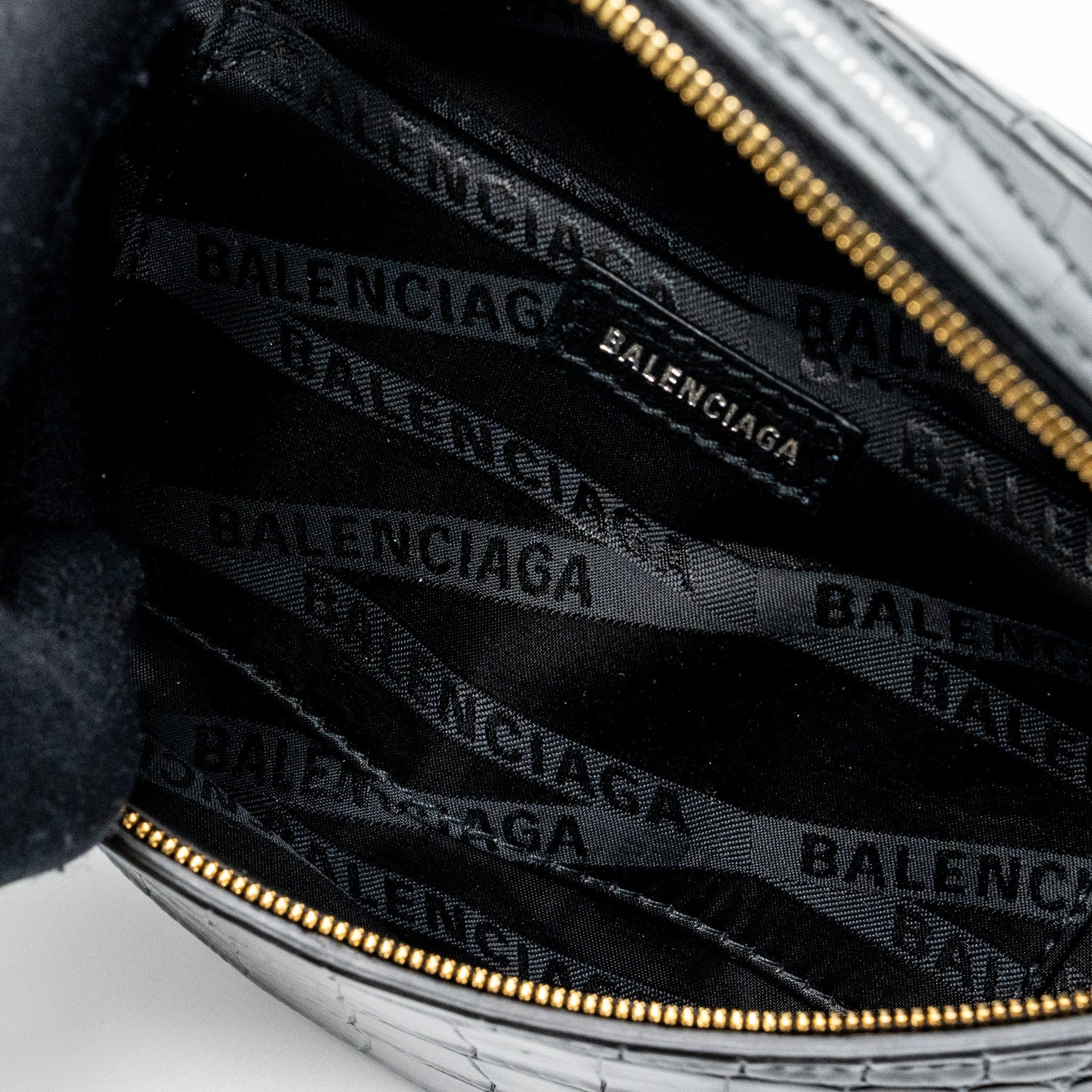 Top Quality Balenciaga SOUVENIR BELT BAG Croc-Embossed Calfskin Black GHW